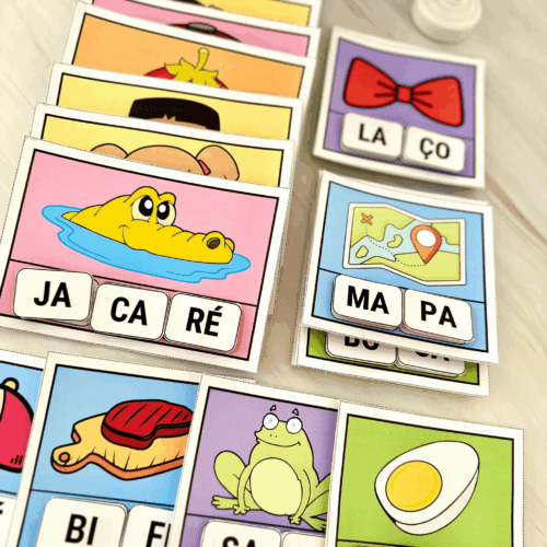 Arquivo Encaixe das Silabas, recurso com 20 fichas interativas para trabalhar silabas simples com crianças da Educação Especial.