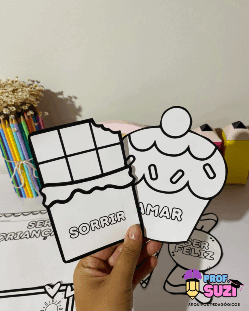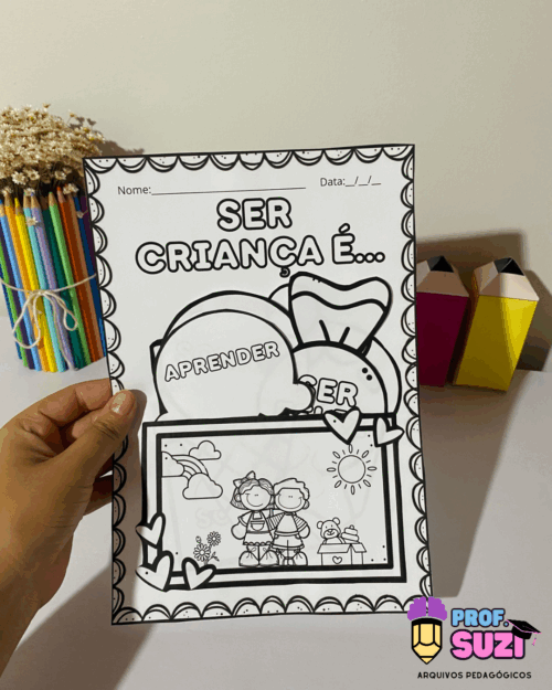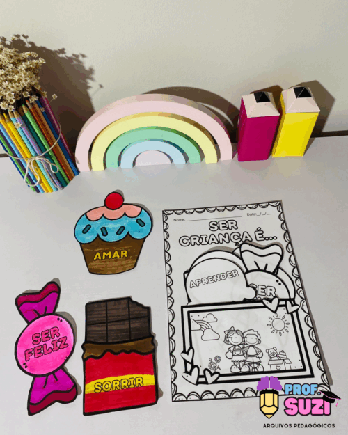 As crianças irão destacar palavras como brincar, sonhar, aprender, sorrir e amar, refletindo de maneira simples e divertida sobre o verdadeiro significado de ser criança.