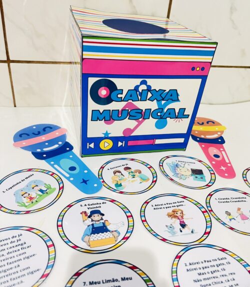 Apresente às crianças o universo mágico das cantigas de roda com a nossa Caixa Musical Especial! Uma forma divertida, afetiva e educativa de estimular a linguagem, o ritmo, a memória e a imaginação!