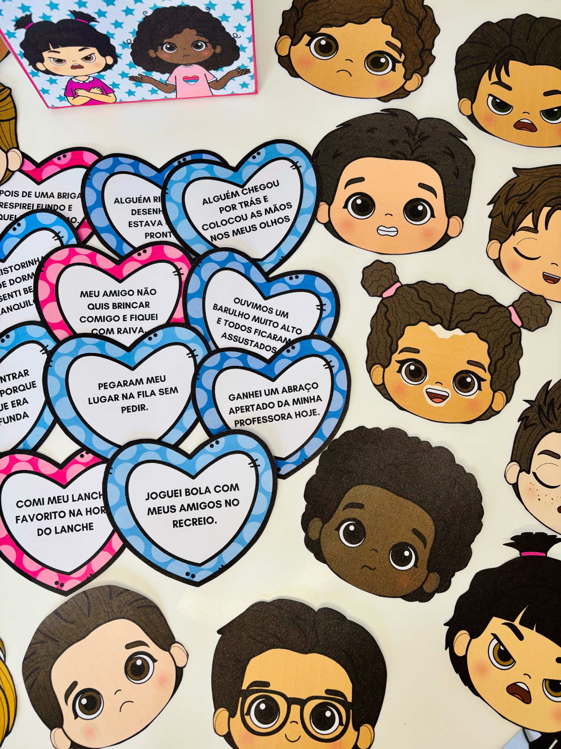 💖Estimula a empatia: ao analisar diferentes situações e expressões, as crianças se colocam no lugar dos outros, compreendendo melhor os sentimentos alheios.
