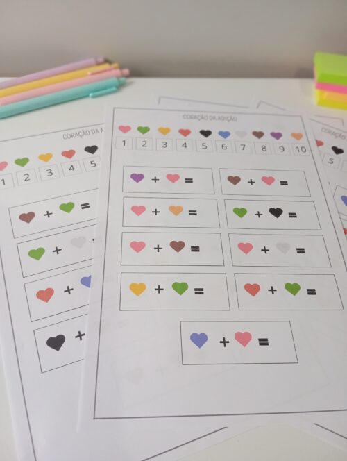 🌈 Com o Coração da Adição, seus alunos vão descobrir que somar pode ser divertido, visual e criativo.