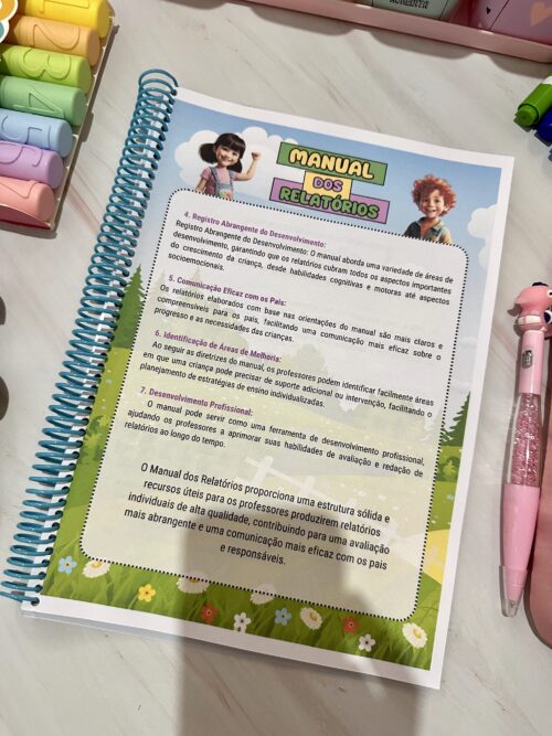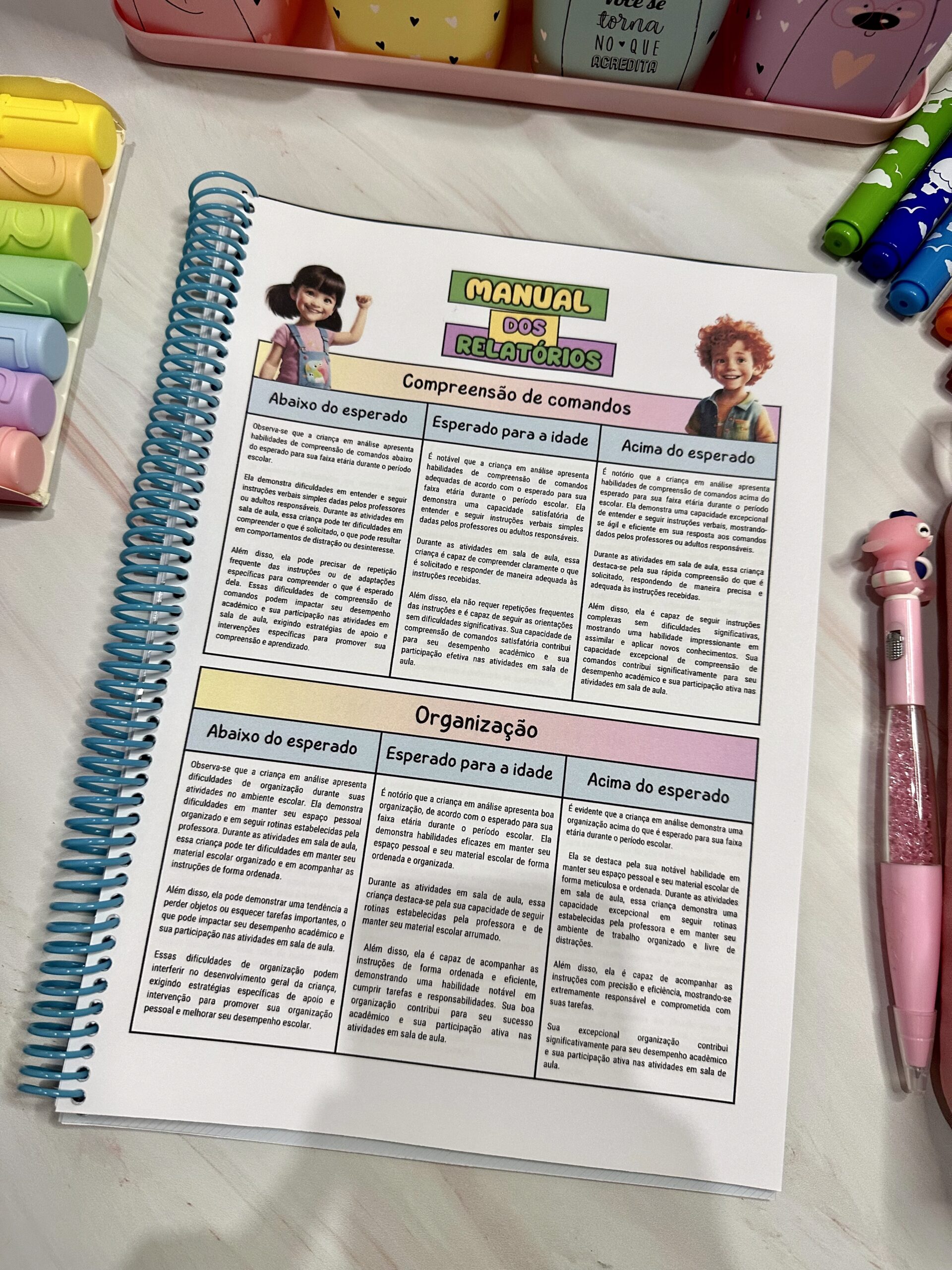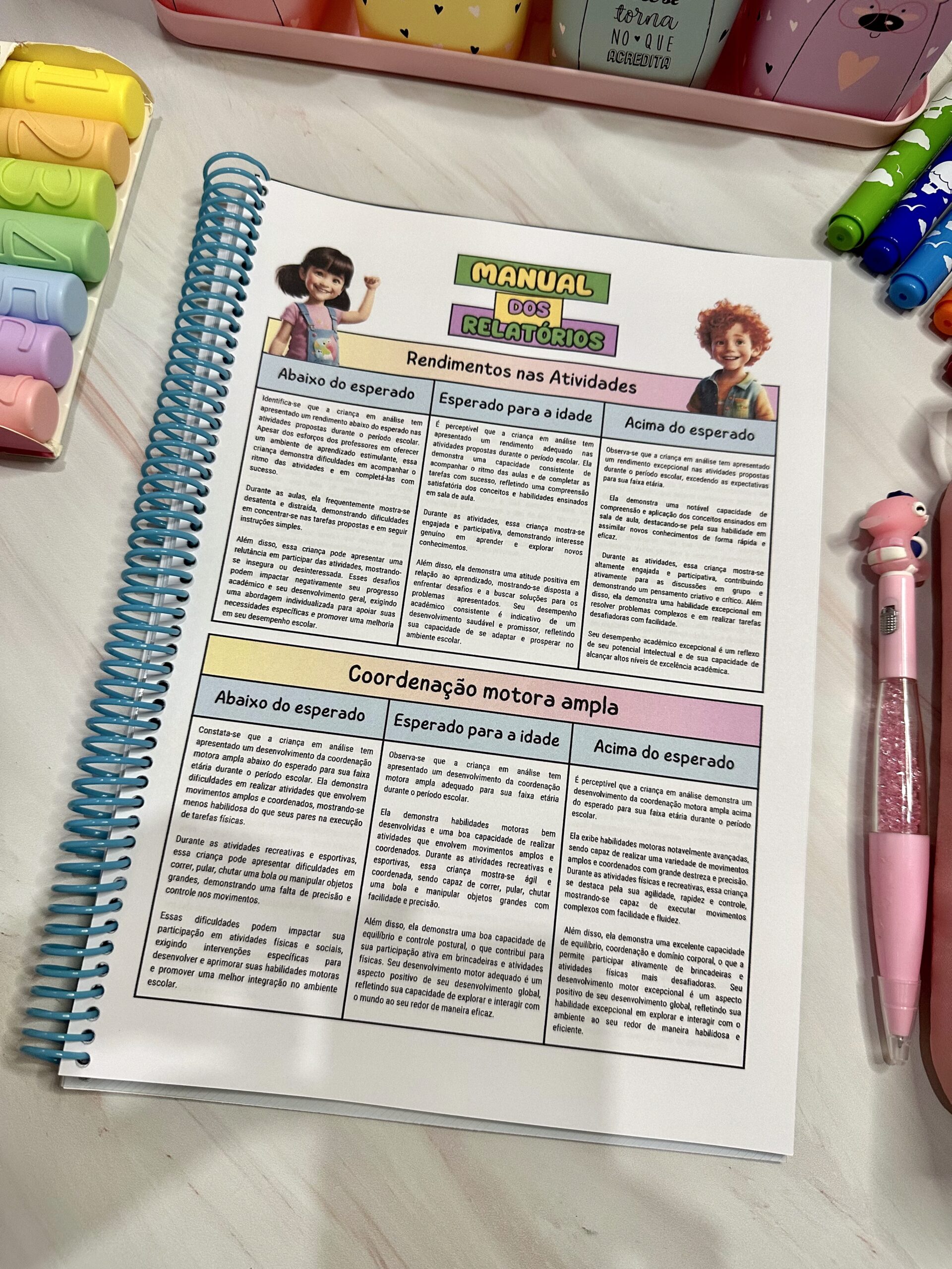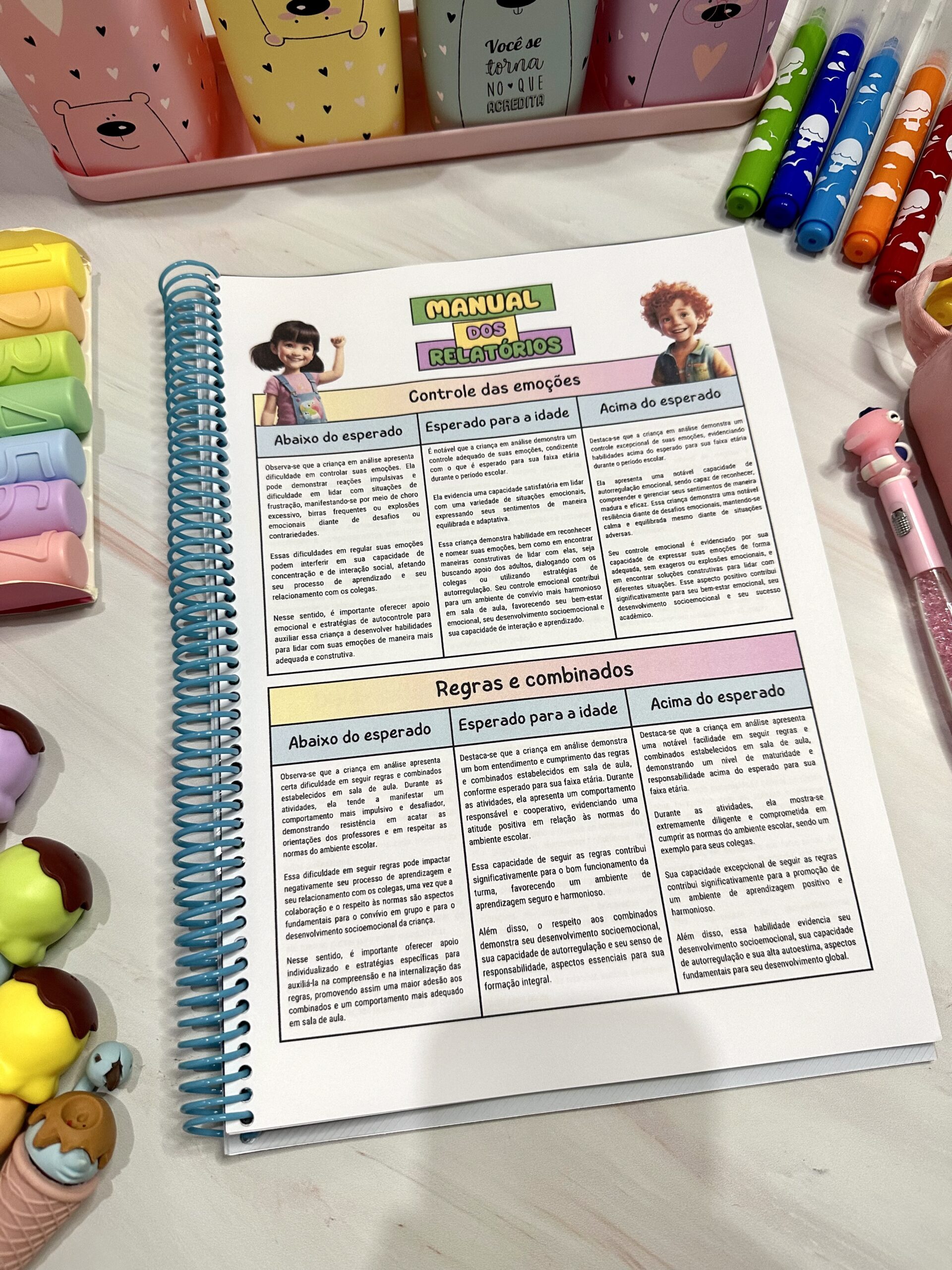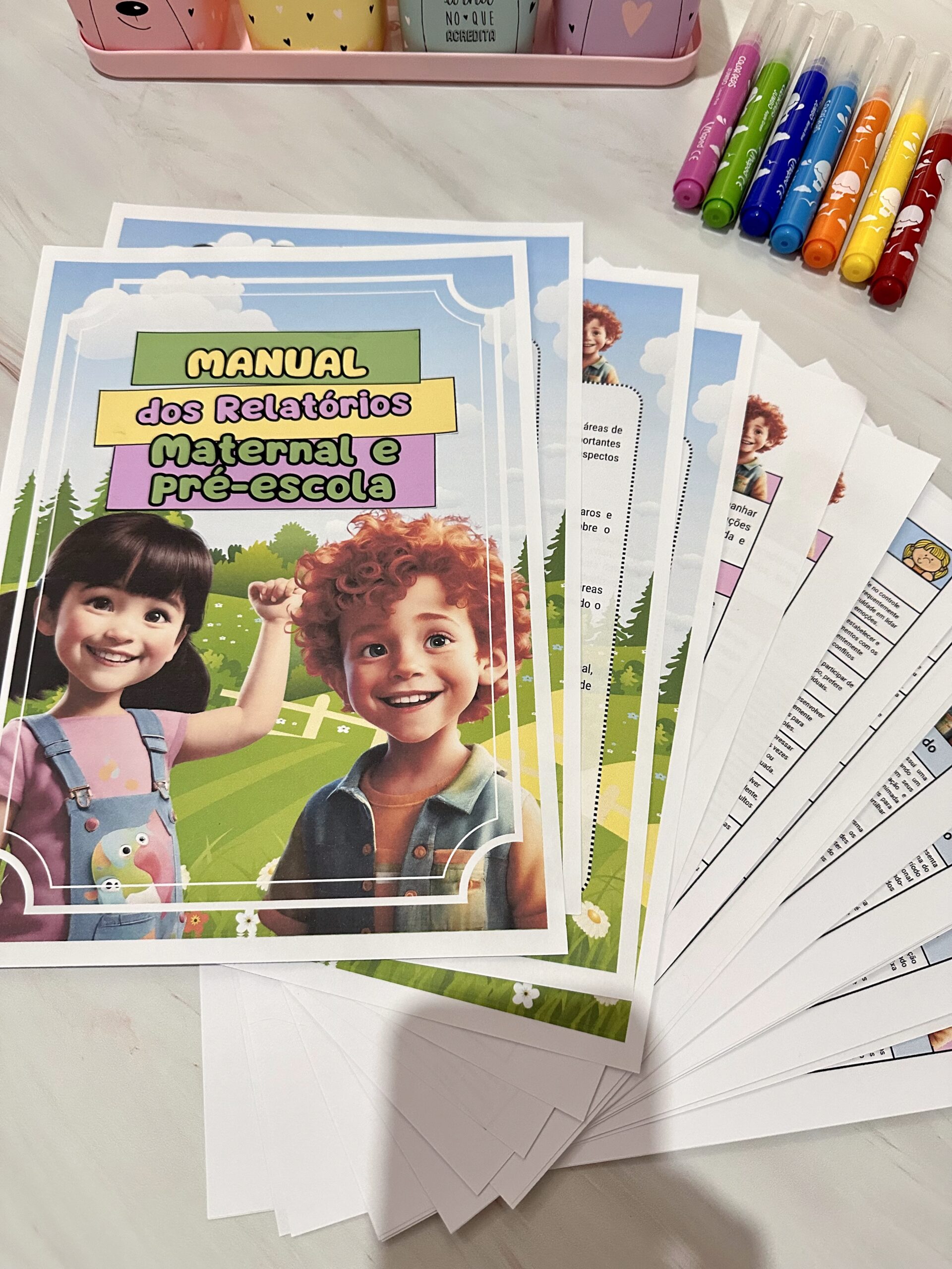 O Manual dos Relatórios é a ferramenta ideal para professores que buscam qualidade, agilidade e personalização. Com ele, você transforma o processo de elaboração dos relatórios das crianças do Maternal e Pré-Escola em algo simples e organizado!