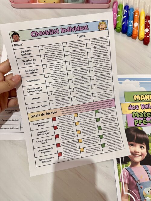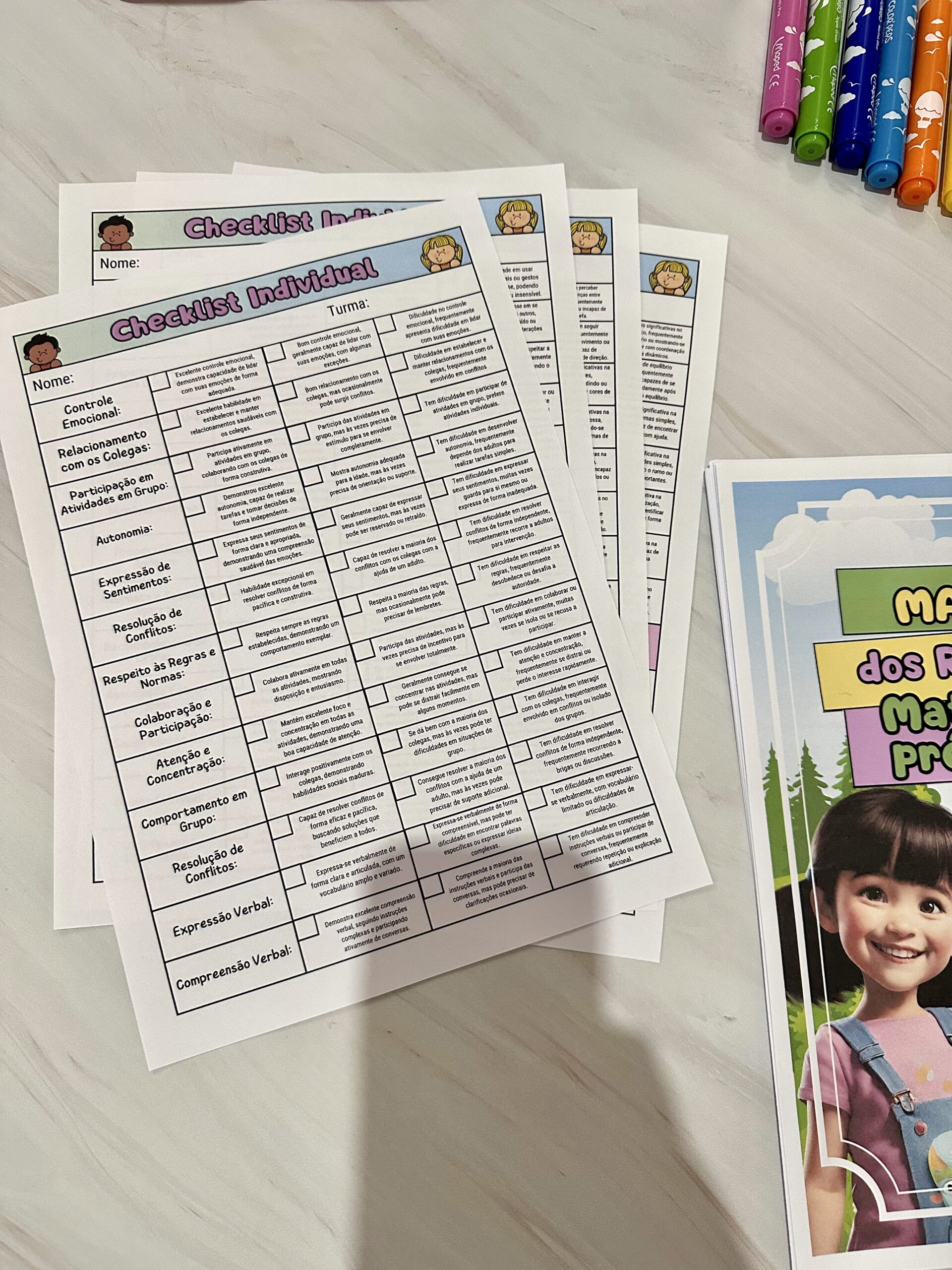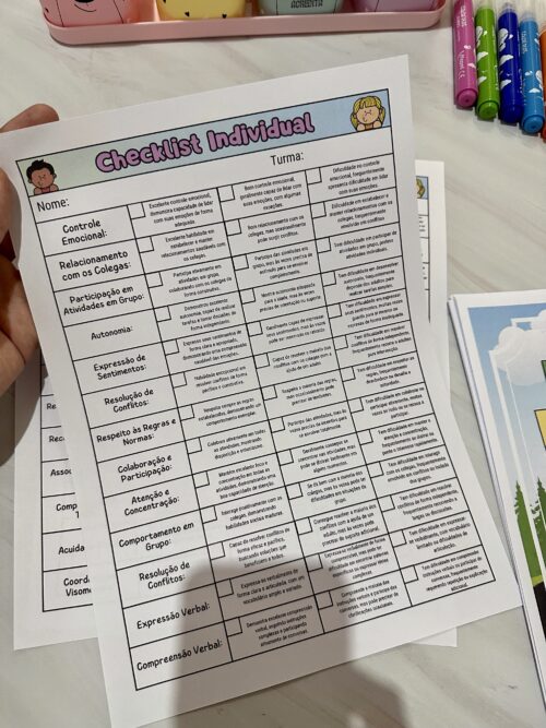 ✔️ +40 Itens de Avaliação: Um checklist completo para analisar o desenvolvimento cognitivo, motor, comportamental e socioemocional de cada aluno.