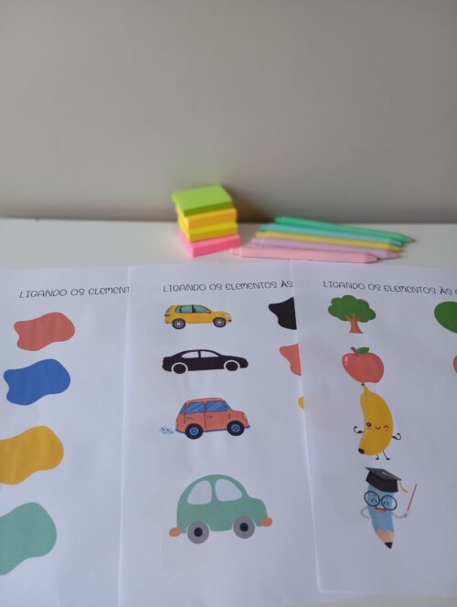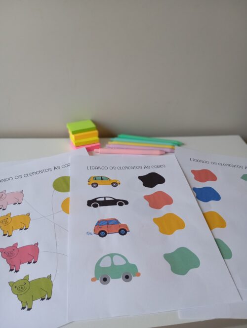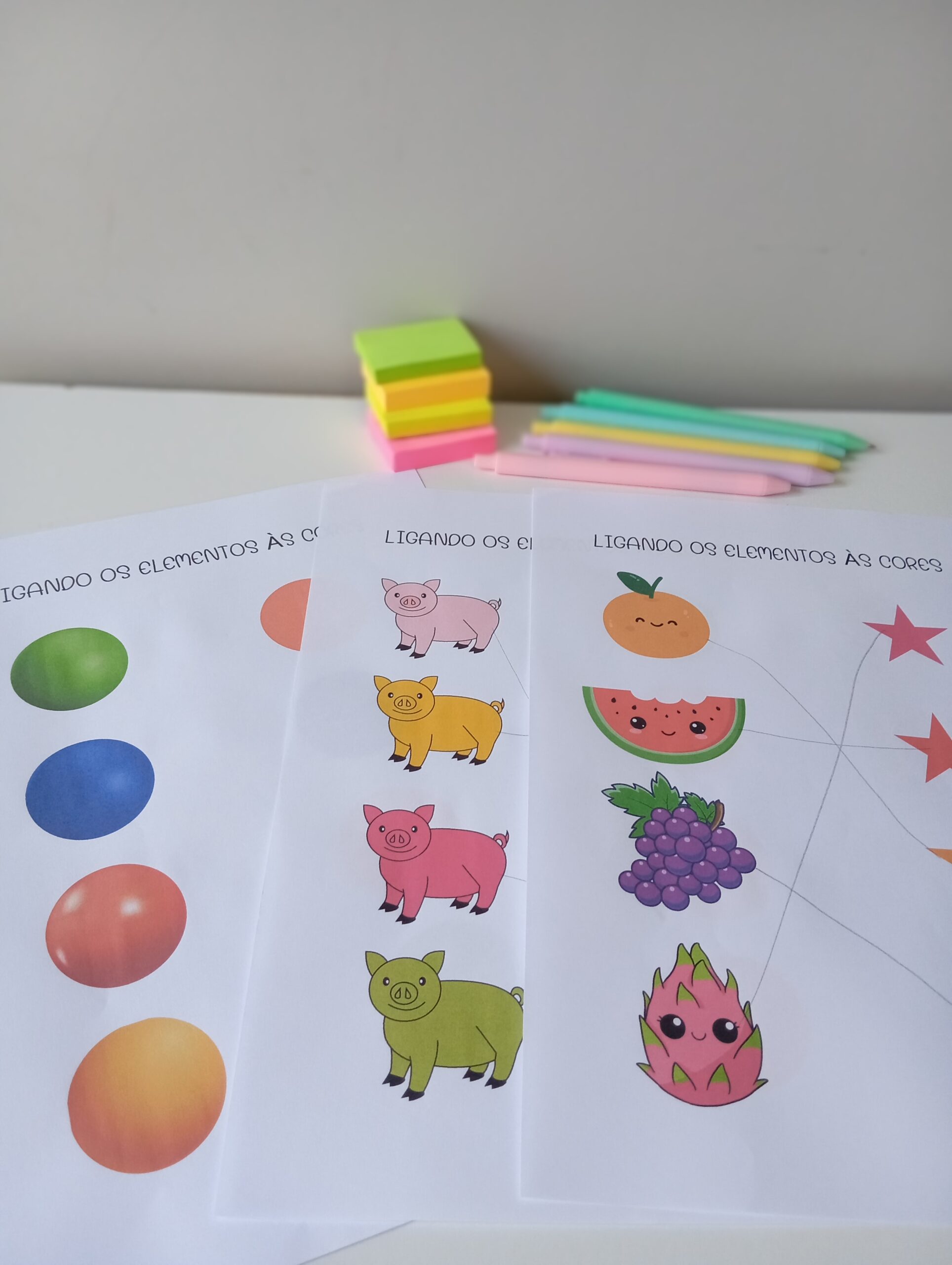 Com esta atividade, as crianças desenvolvem a atenção, o raciocínio lógico e a coordenação motora enquanto associam cada elemento à sua cor correspondente. 🎨✨