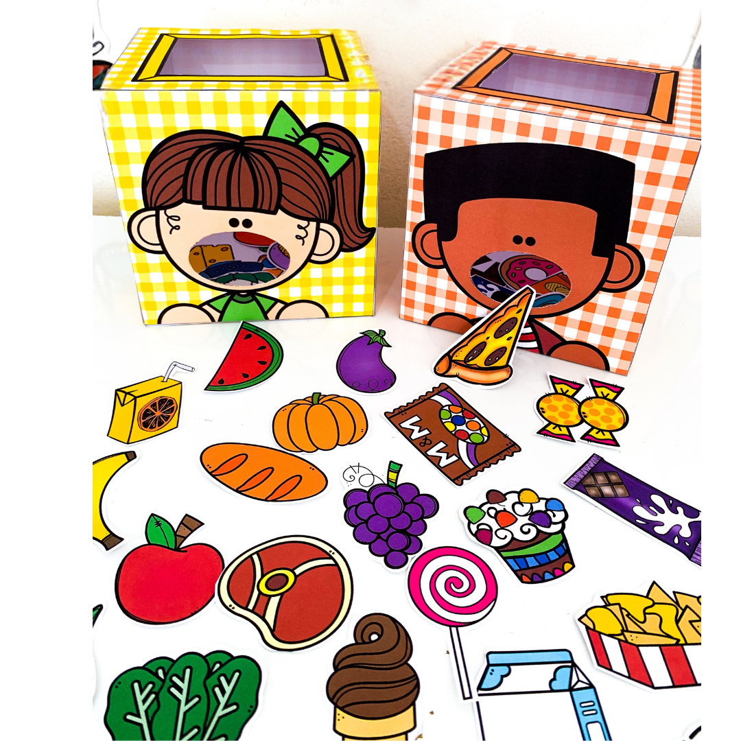 Transforme sua aula sobre alimentação saudável em um momento cheio de aprendizado e diversão com as Caixinhas da Alimentação Saudável e Não Saudável! 🥦🍟