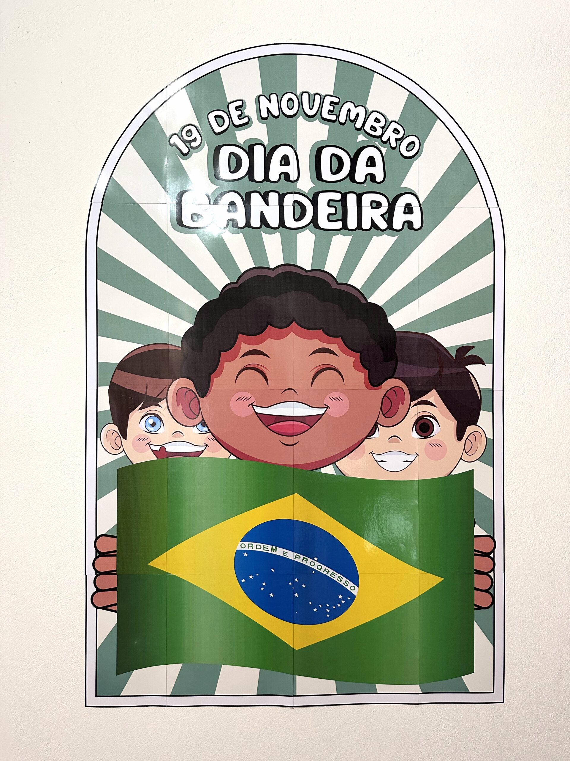 Painel Dia da Bandeira, com 16 páginas. Já vai ampliado. Medidas: 61 cm de largura e 97 cm de altura.