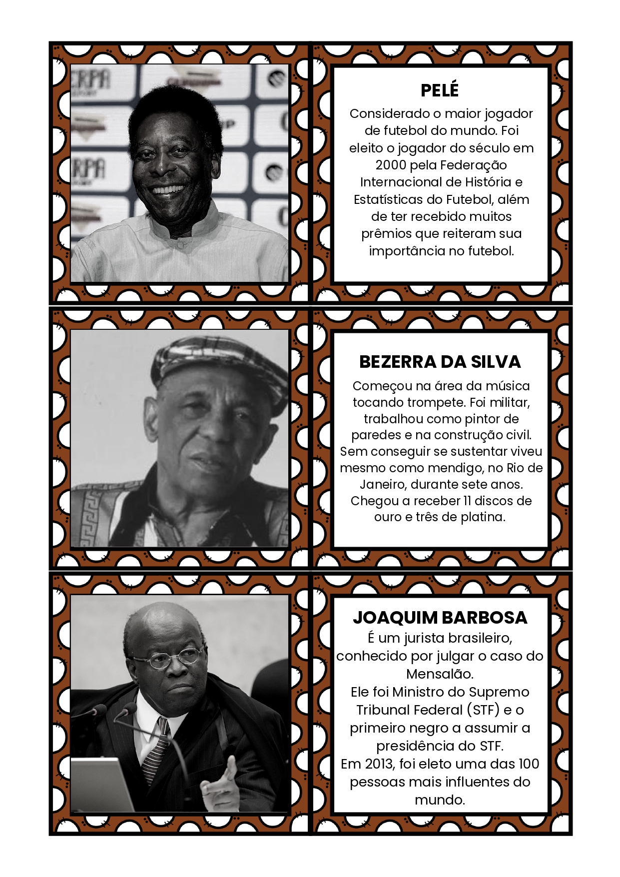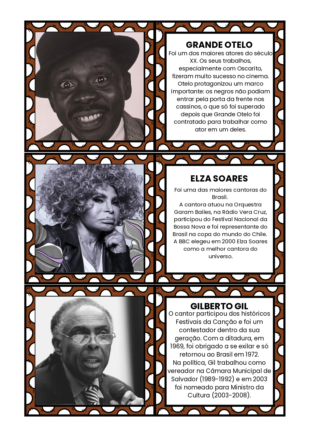 ✅ Cartinhas ilustradas com grandes personalidades negras que marcaram a história e a cultura do Brasil 🌟