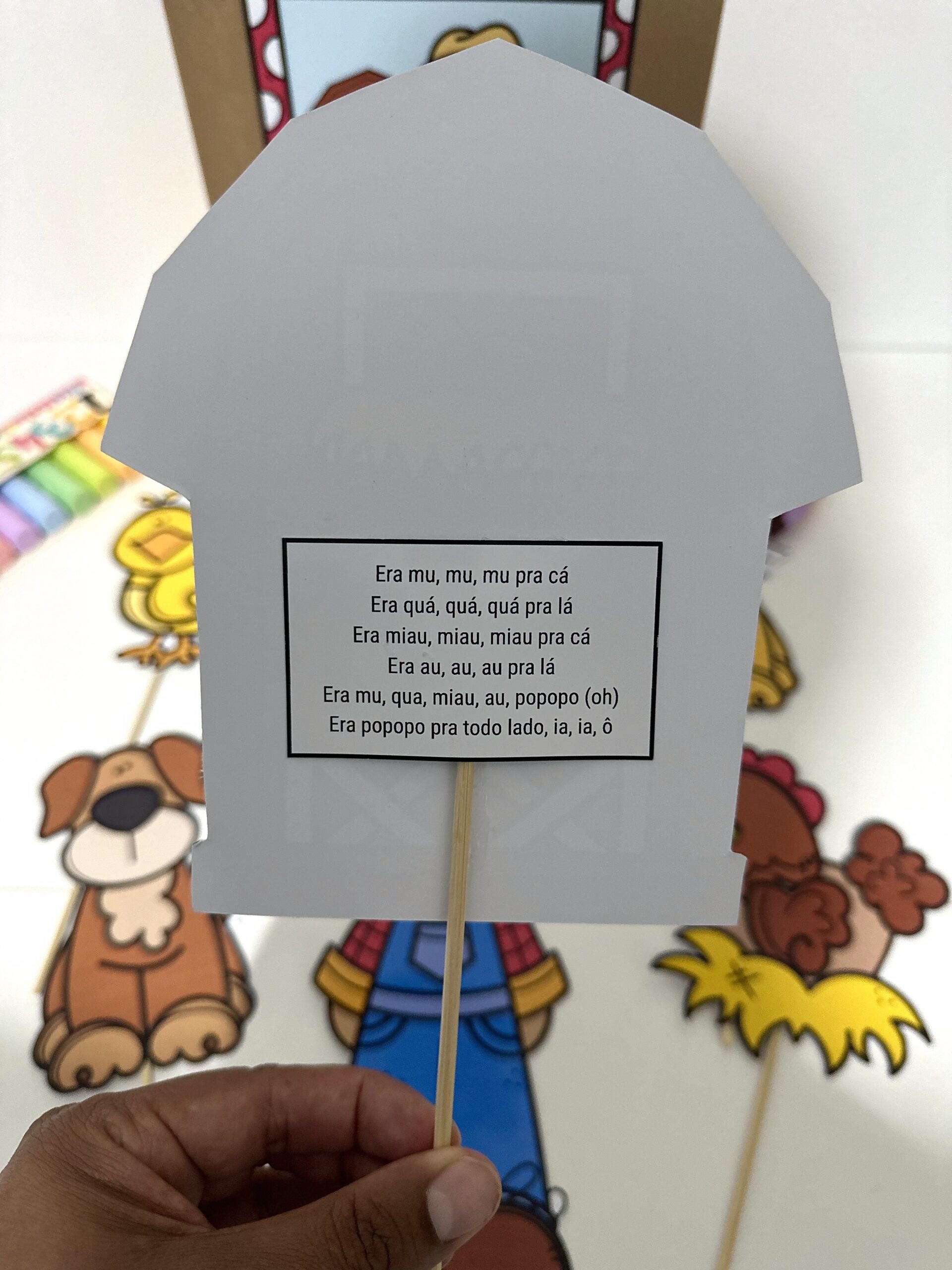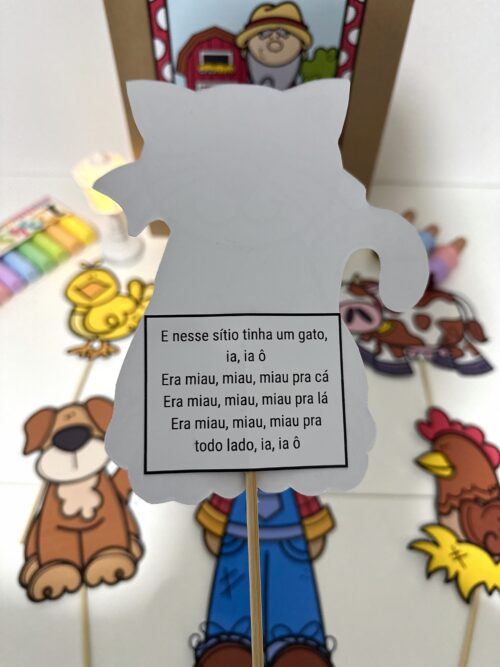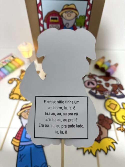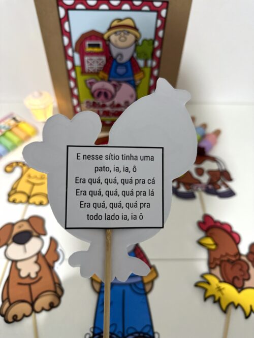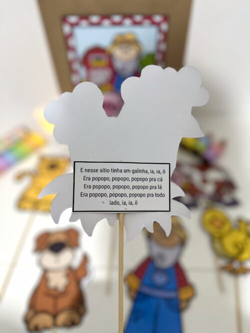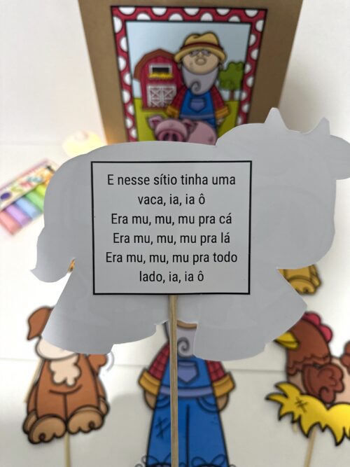 O material inclui a decoração para a sacola e os trechos da música com as ilustrações para tornar a atividade mais atrativa e divertida para as crianças.