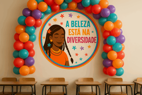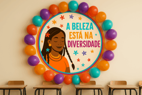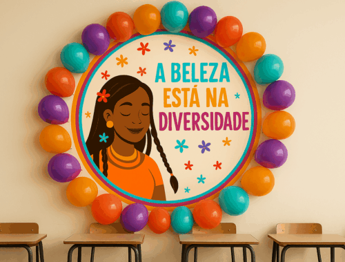 🖤 Com cores vibrantes e design encantador, este painel transmite uma mensagem poderosa sobre igualdade, empatia e amor ao próximo — valores essenciais para a formação de cidadãos conscientes.