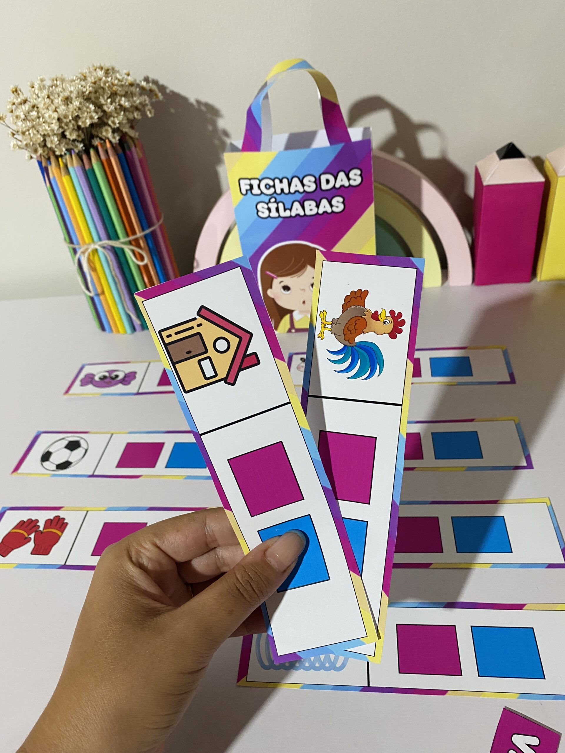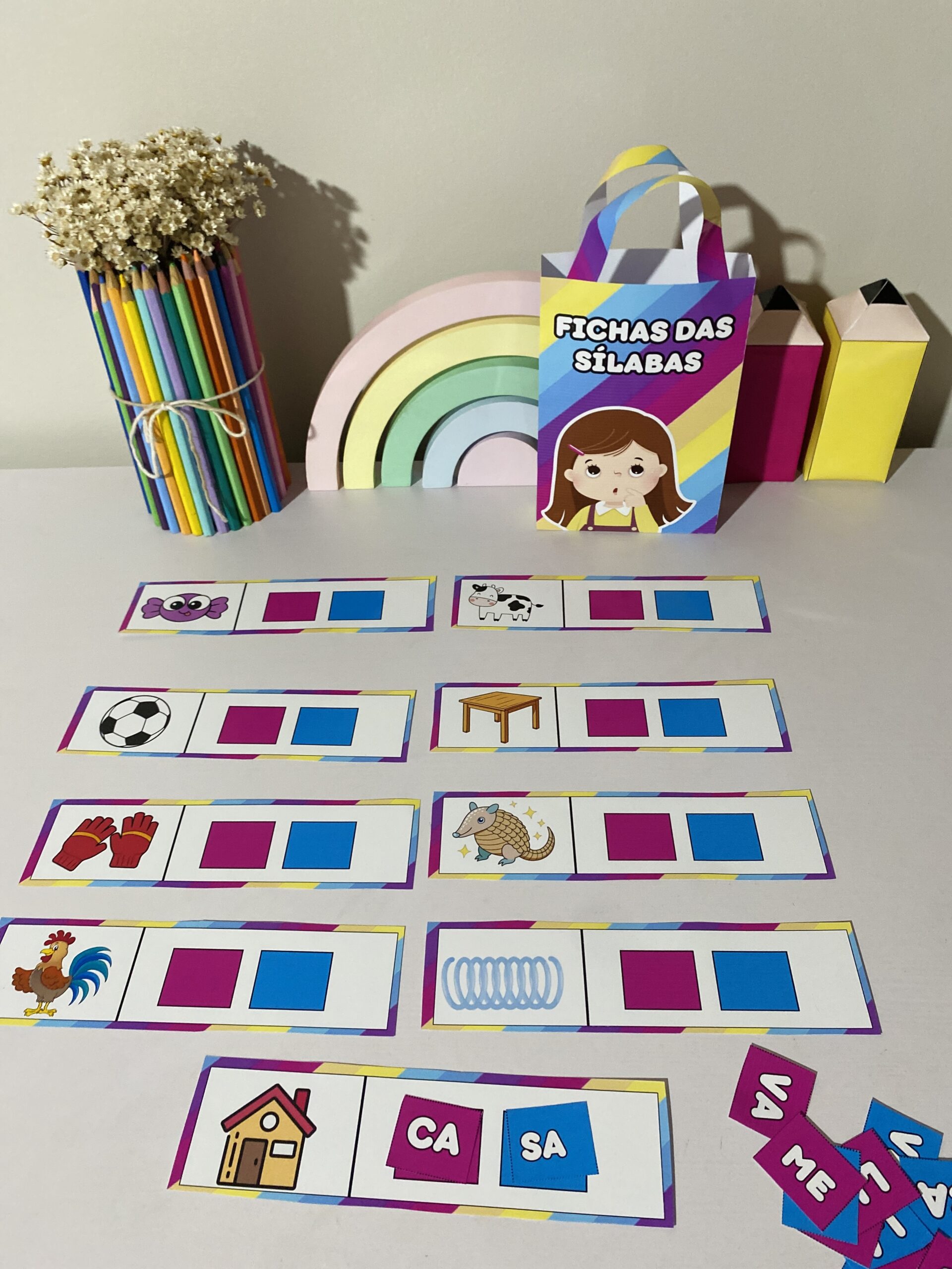 🎲 Jogo com 21 fichas de sílabas para trabalhar leitura e consciência fonológica de forma lúdica. Pode ser usado em sala de aula para formar palavras coletivamente, em duplas ou pequenos grupos, estimulando atenção, percepção auditiva e raciocínio.