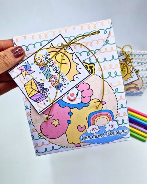Também traz a mensagem festiva “Parabéns – Dia das Crianças”.