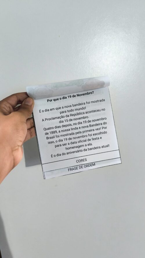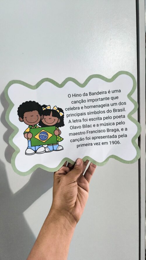 Descubra o significado das cores da bandeira, o motivo da celebração em 19 de novembro e aprenda curiosidades sobre o Hino Nacional. Acompanha atividade para colar no caderno. Ideal para trabalhar o tema de forma leve e educativa.