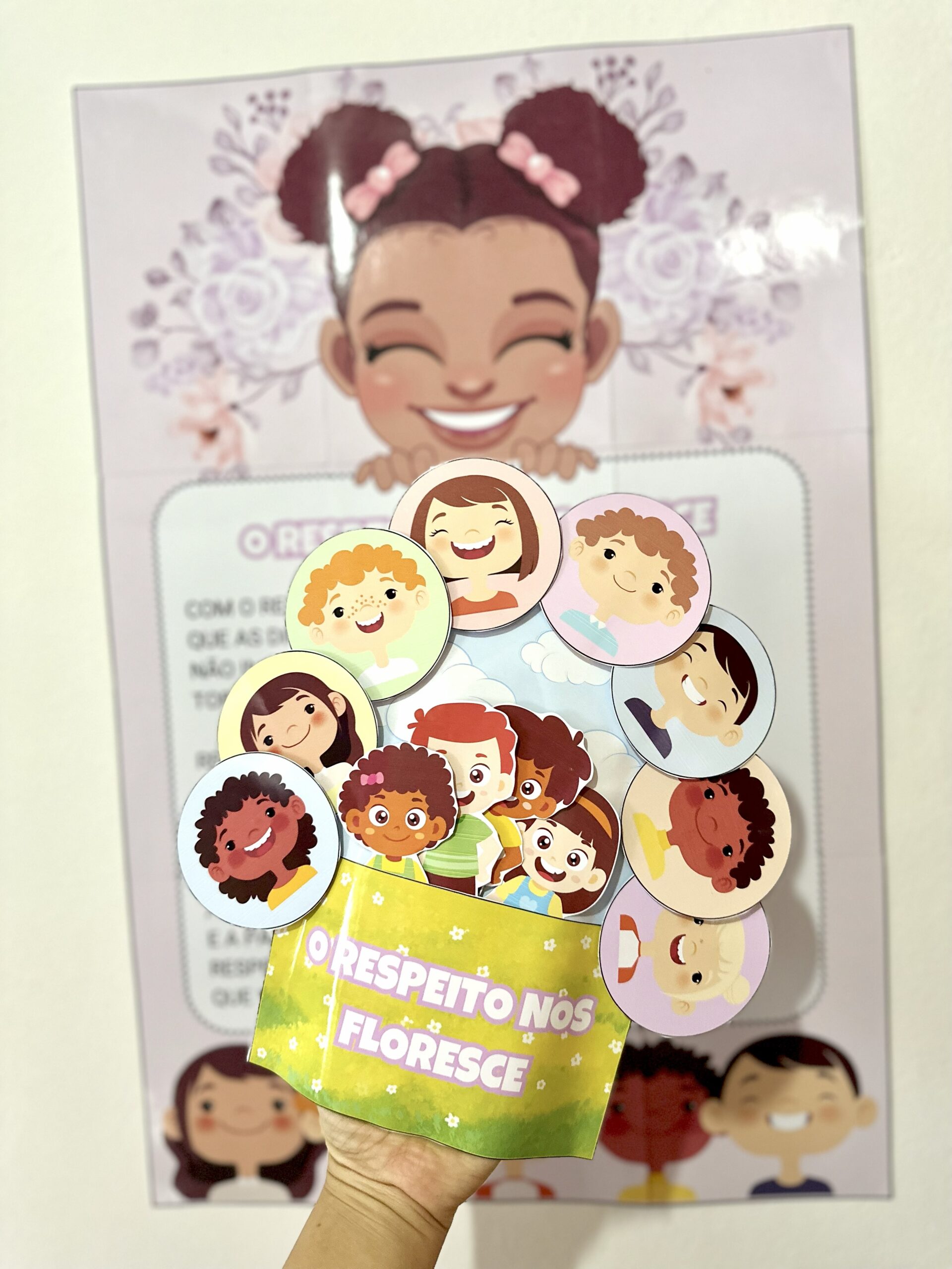 Luva pedagógica e cartaz do Poema “O respeito nos faz