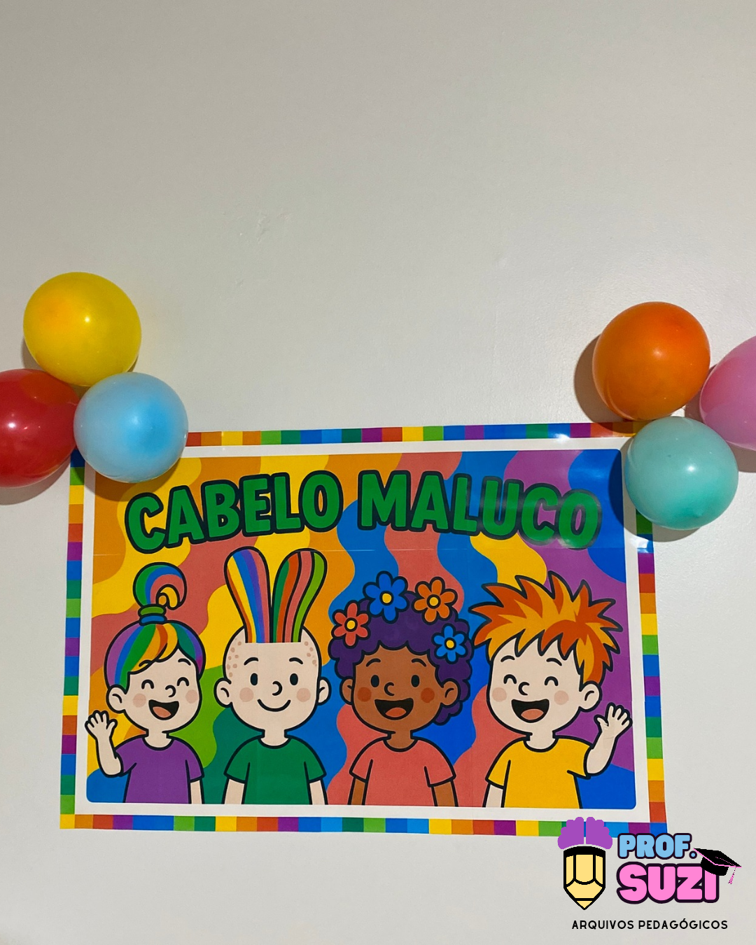 Transforme o ambiente com esse painel criativo e supercolorido, perfeito para celebrar o Dia do Cabelo Maluco! 🧑‍🎤💈