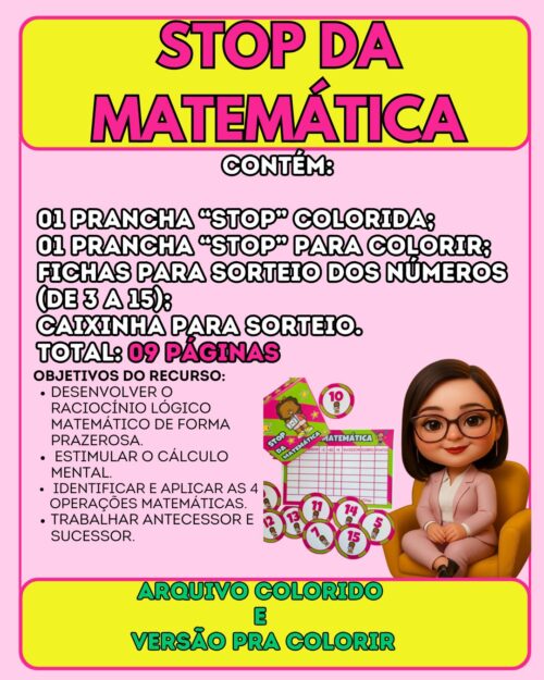 Essa é uma versão matemática da clássica brincadeira “Stop”, só que agora com números no lugar de letras! Um recurso lúdico e inteligente que transforma a sala de aula em um ambiente de diversão e aprendizado ao mesmo tempo!