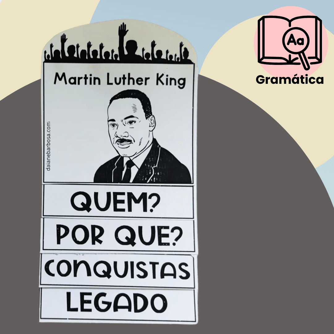 Recurso bilíngue sobre Martin Luther King para trabalhar #ConscienciaNegra, #EducaçãoAntirracista e #CulturaAfroBrasileira. Atividades de leitura, gramática e escrita em Português e Inglês. Ideal para o #20denovembro e projetos sobre #Diversidade