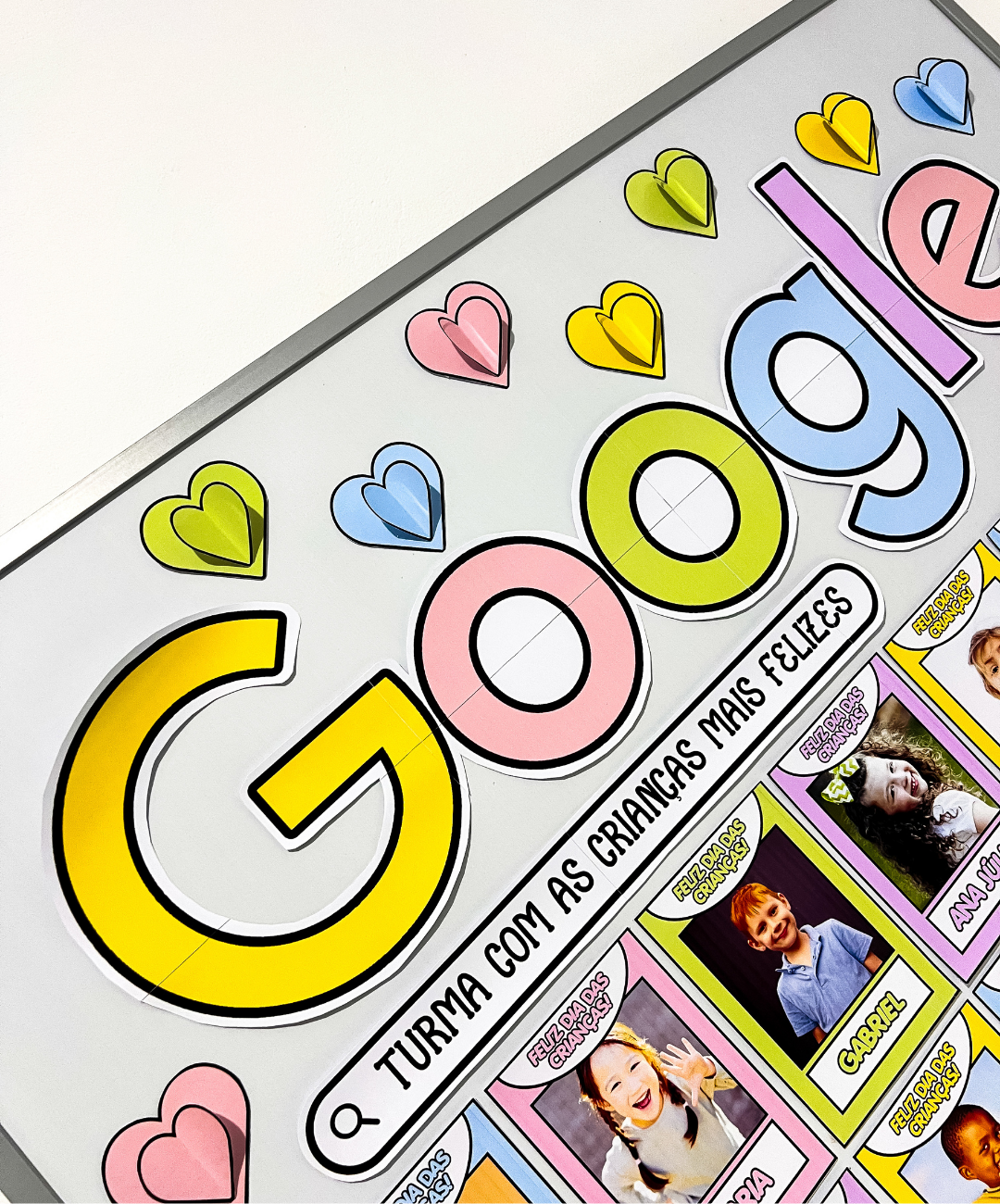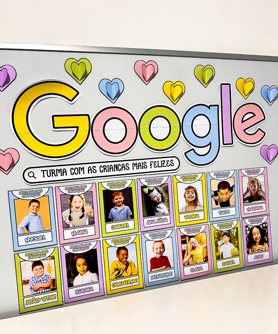 O Painel Google Dia das Crianças é um material divertido e moderno, inspirado no visual colorido e criativo da famosa página do Google.
