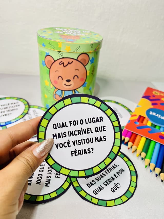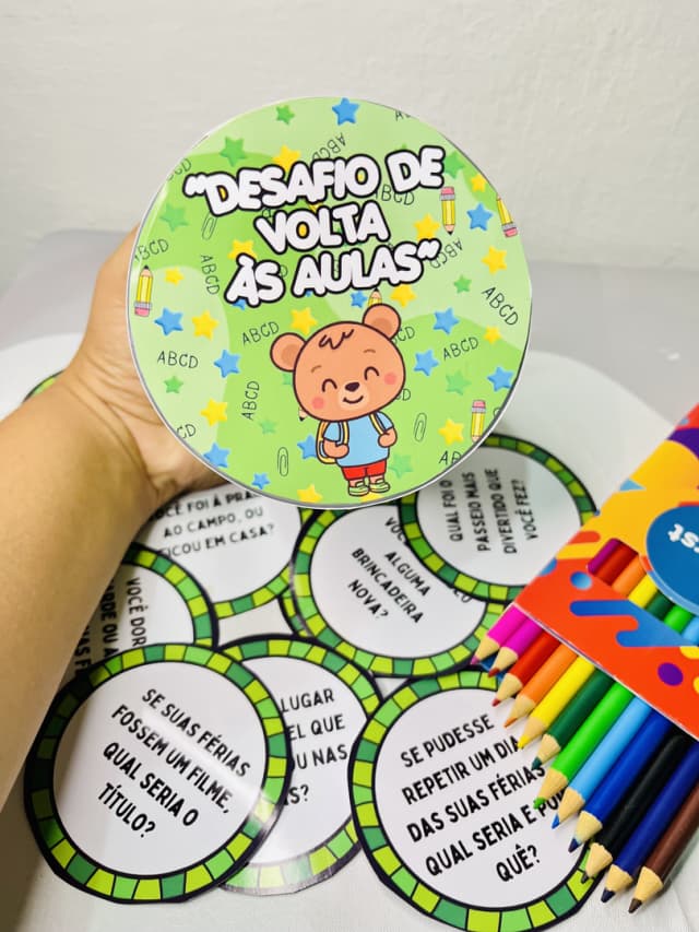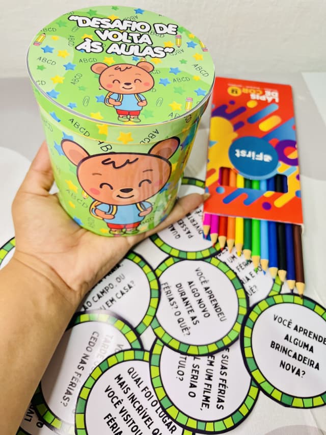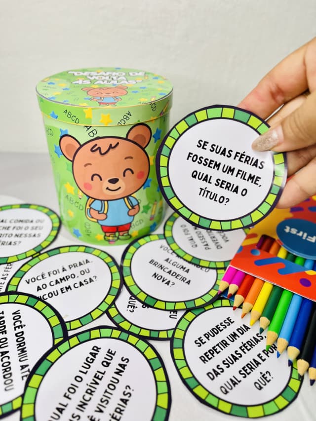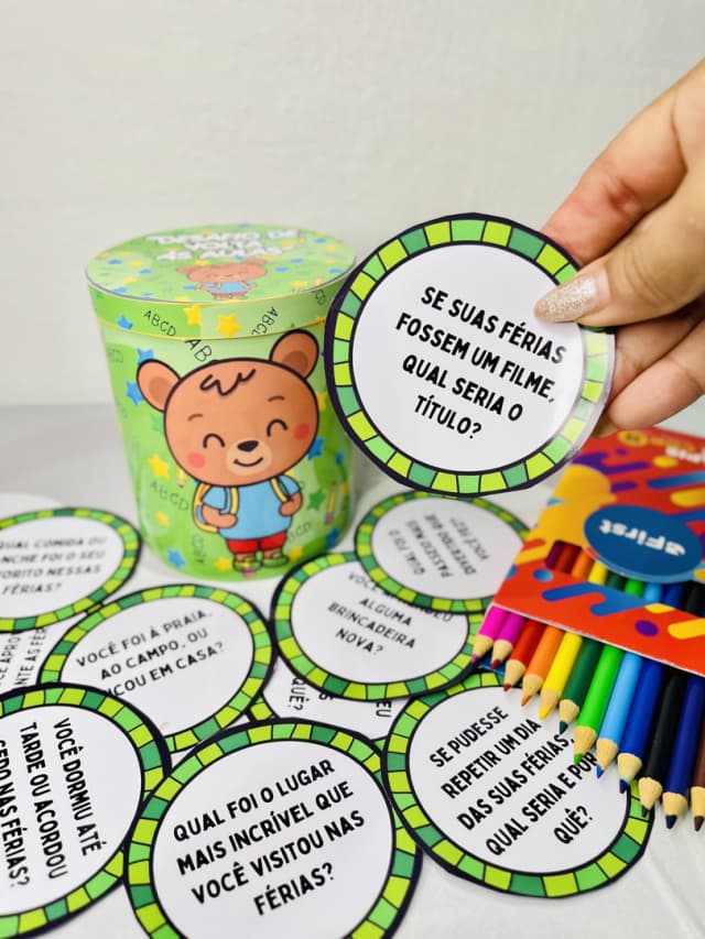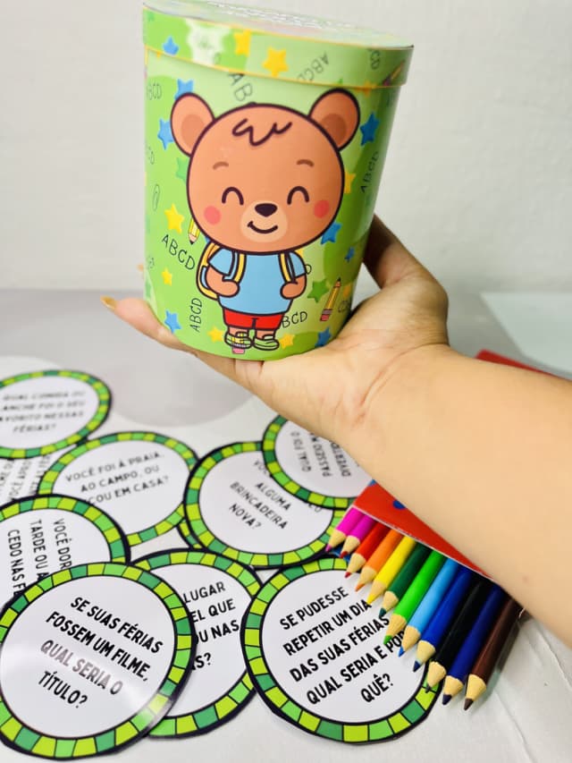 🎒 Desafio “Volta às Aulas na Lata” – Integração com Criatividade e Afeto! Comece o ano letivo com uma proposta lúdica e acolhedora! O Desafio Volta às Aulas na Lata é uma atividade interativa que promove o reencontro entre os alunos de forma divertida e significativa. 🧠 Como funciona? Os alunos retiram da lata perguntas relacionadas às férias e respondem oralmente ou por escrito, promovendo conversas e fortalecendo vínculos. 📌 Objetivos pedagógicos: ✔️ Estimular a expressão oral e escrita ✔️ Promover a interação social e escuta ativa ✔️ Facilitar o retorno ao ambiente escolar de forma leve ✔️ Conectar experiências pessoais aos conteúdos escolares 🎯 Ideal para os primeiros dias de aula, roda de conversa ou momentos de acolhida! 📎 Material em PDF pronto para imprimir e usar.