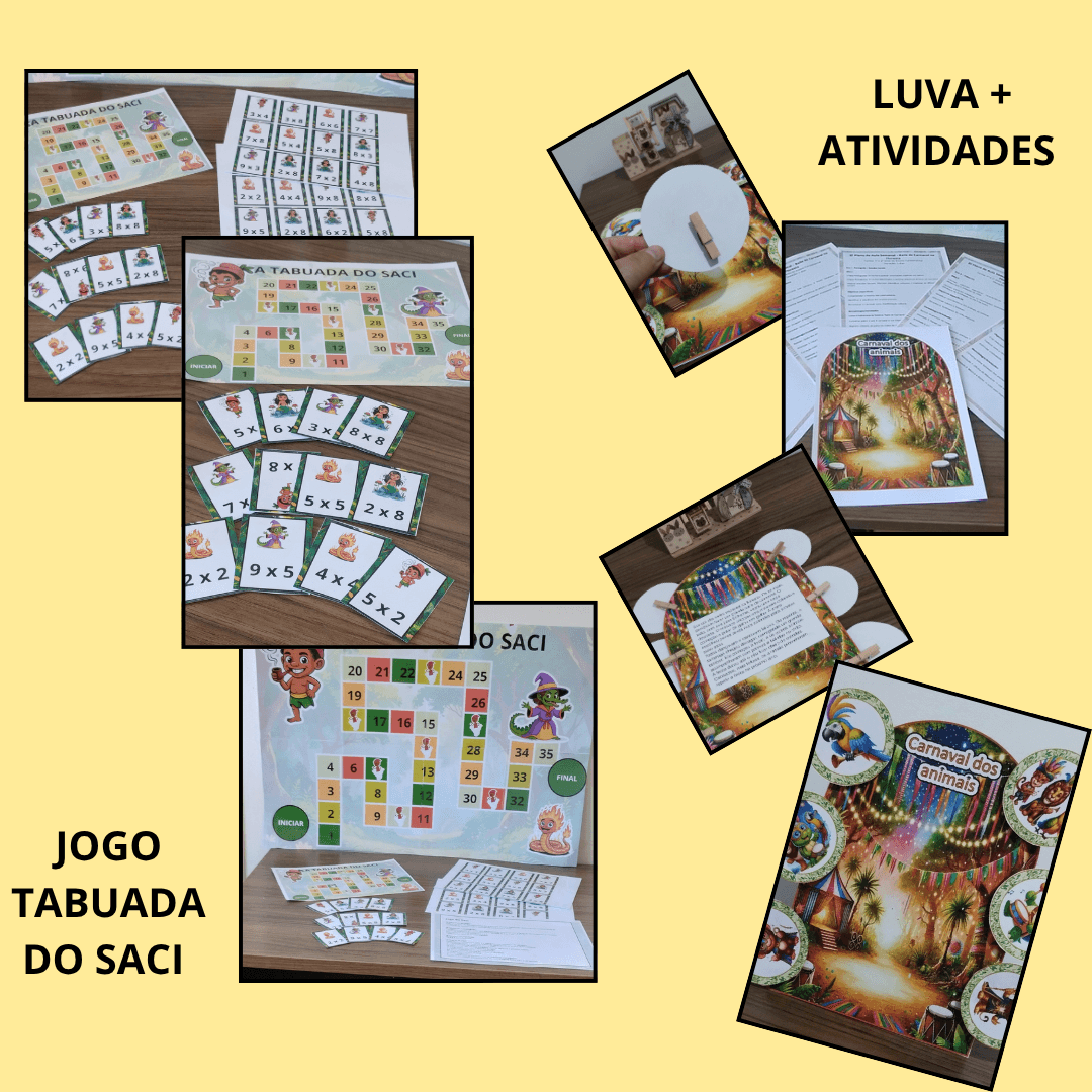 ✅ O que você vai receber:📚 Luva de História João e Maria💧 Dominó da Água🧮 Jogo Tabuada do Saci🍓 Morango da Leitura📆 Calendário Ampliado - Tema Capivara📨 Bilhetinhos de Incentivo - Tema Capivara🎭 Luva de História - Carnaval dos Animais + Atividades🔤 Bingo dos Sinônimos📦 História na Caixa: As Cores de Cada Um🎵 Caixa Musical - Imitando os Animais🧩 Jogo “Complete com as Vogais”