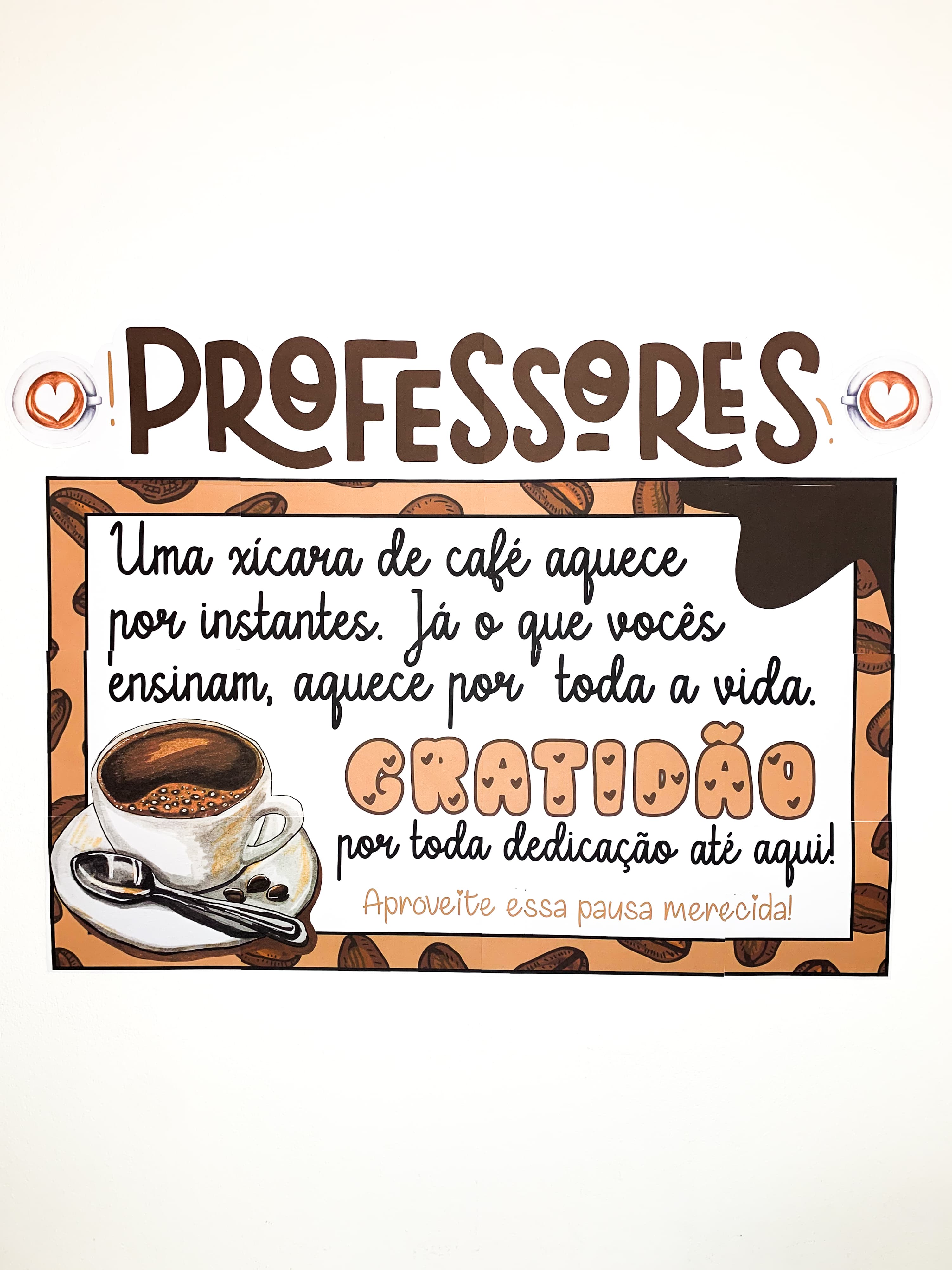 ☕ Recarregar é preciso! Entre uma xícara e outra, celebramos a pausa merecida de quem se dedica com alma e coração à educação. Este painel é mais do que decoração—é um abraço visual no esforço diário de cada educador.
