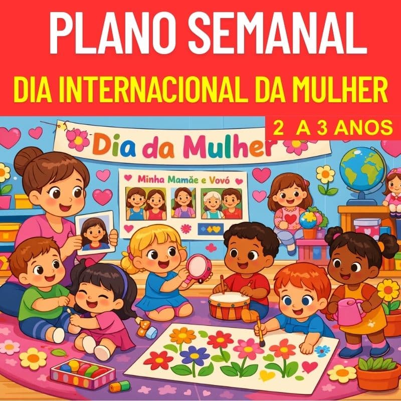 Professoras queridas 🌸✨ O PLANO SEMANAL – DIA INTERNACIONAL DA MULHER (2 a 3 anos) foi cuidadosamente estruturado para proporcionar vivências significativas, afetivas e alinhadas à BNCC, valorizando as mulheres que fazem parte do cotidiano das crianças.