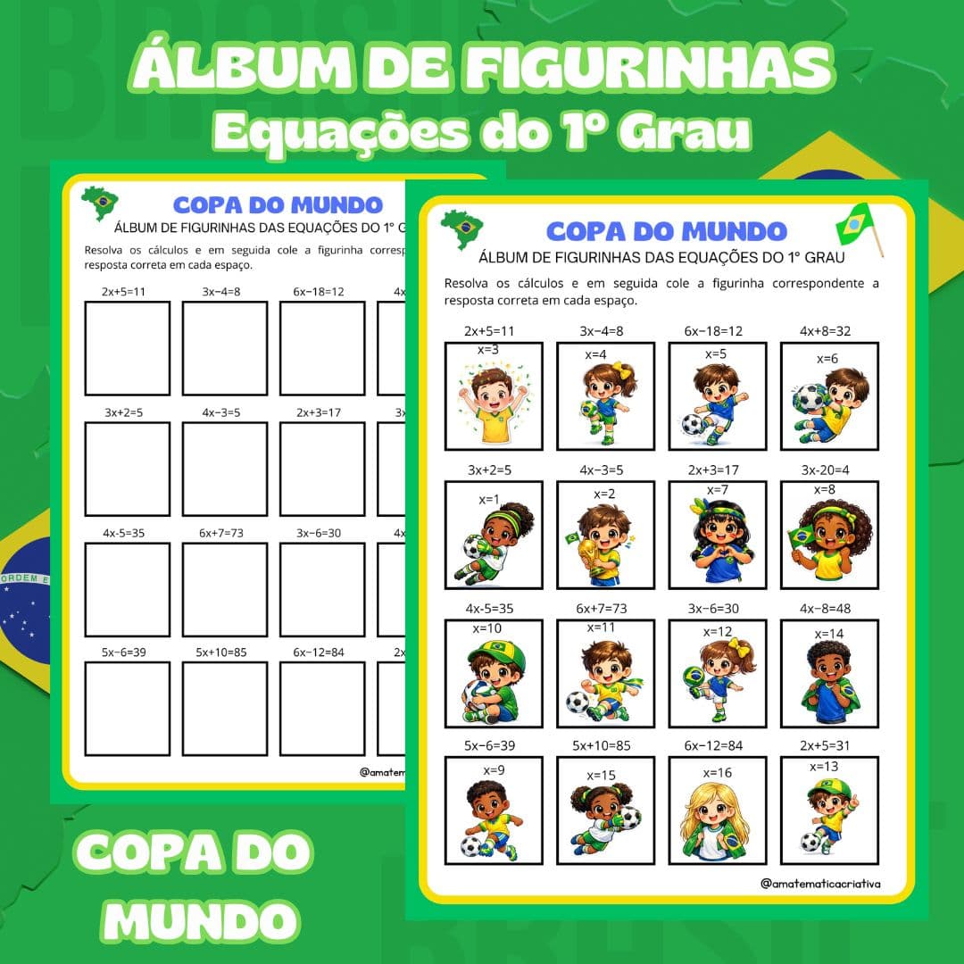 Transforme a aula de matemática em um momento divertido e envolvente! 🥳 Com o Álbum de Figurinhas da Adição e Subtração – Copa do Mundo, os alunos resolvem contas e colam a figurinha correta no espaço correspondente, aprendendo enquanto brincam.