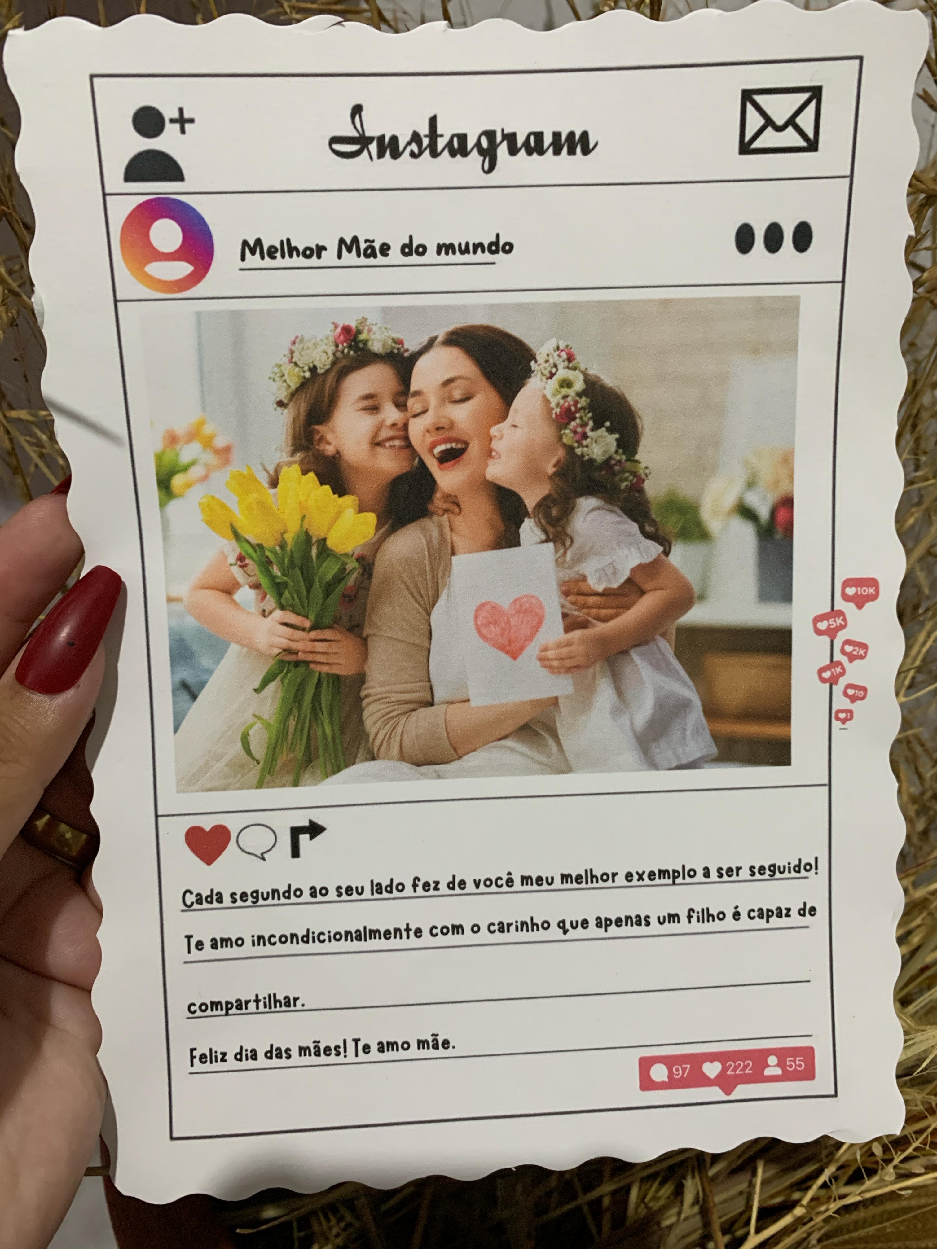 🩷Cartão tema Instagram dia das mães 🩷Mensagem para dia das mães 🩷Tamanho: Dois por folha A4