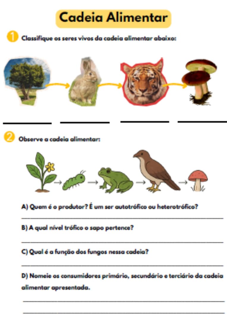 Atividade pronta para impressão sobre o tema cadeia alimentar