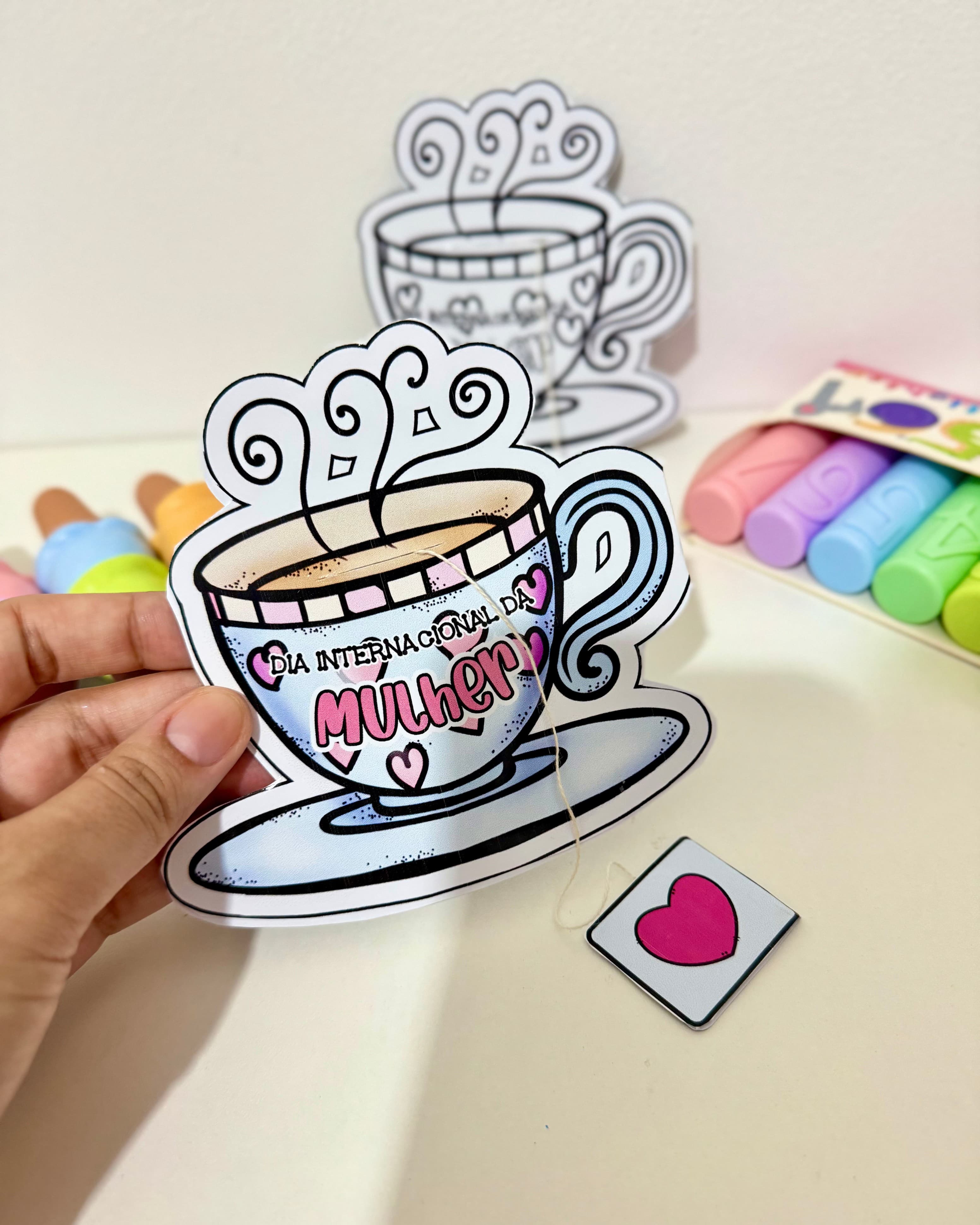 Lembrancinha tema Dia das Mulheres que vai na opção colorida e para colorir.