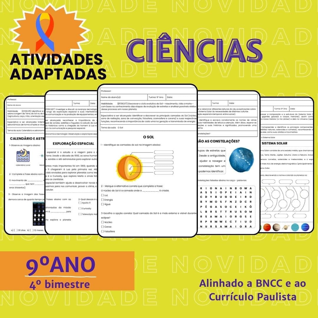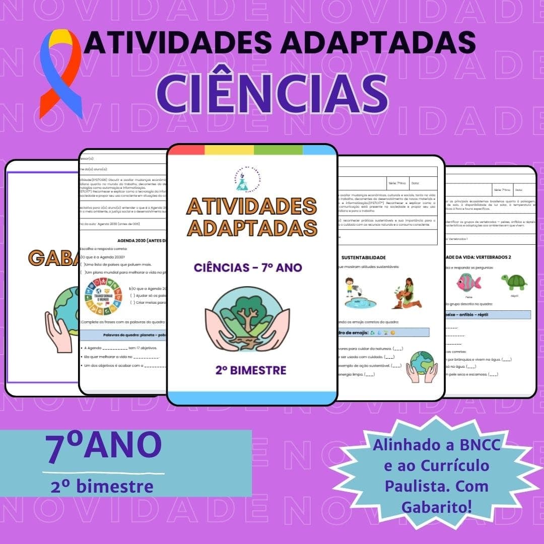 Este material exclusivo reúne atividades adaptadas de Ciências cuidadosamente planejadas para atender às necessidades de alunos do Ensino Fundamental II, com foco em estudantes com Transtorno do Espectro Autista (TEA), dificuldades de aprendizagem ou que demandam recursos mais visuais e objetivos.