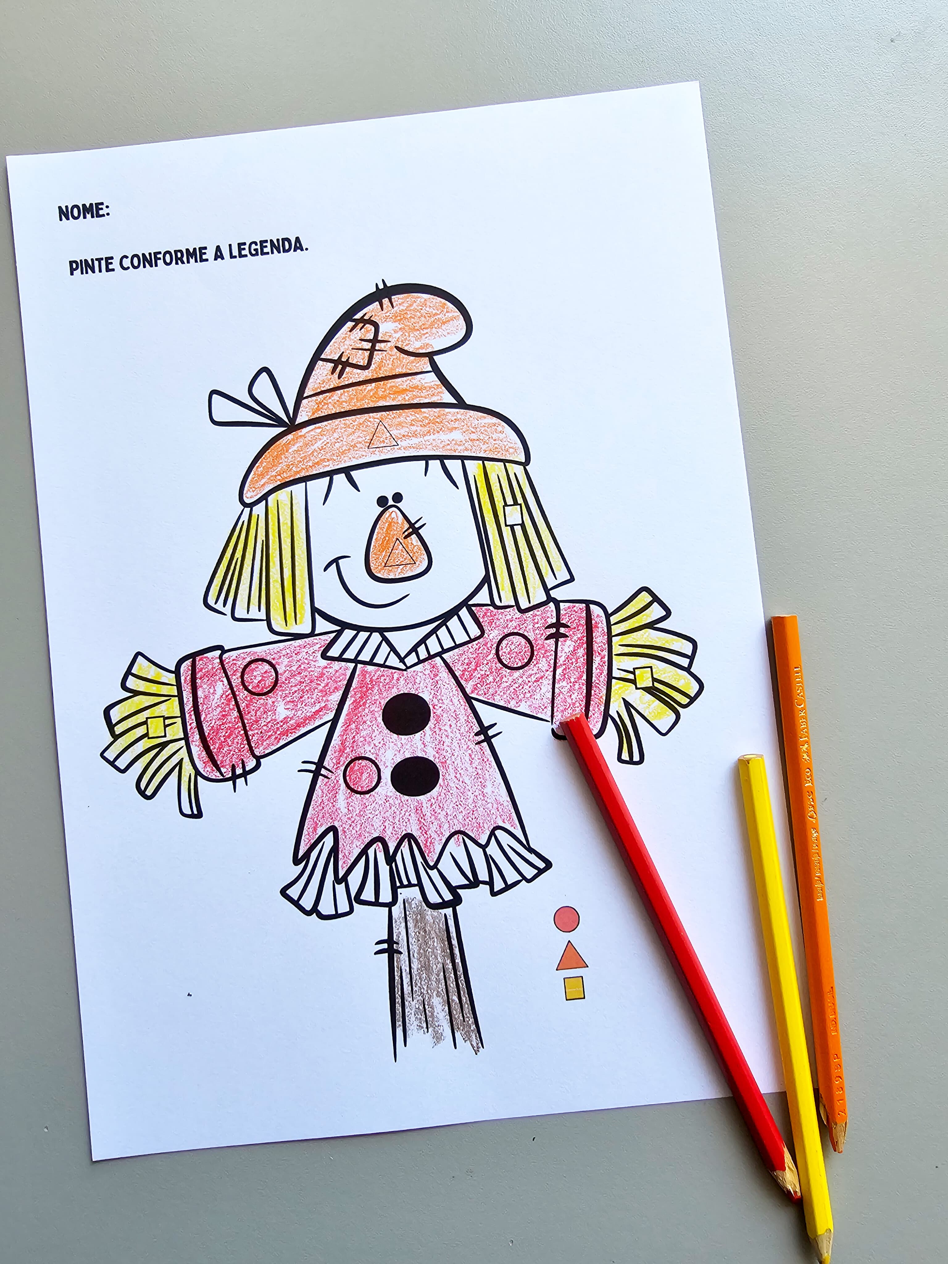 Atividade pedagógica em que a criança deve colorir o desenho conforme a legenda de cores apresentada.