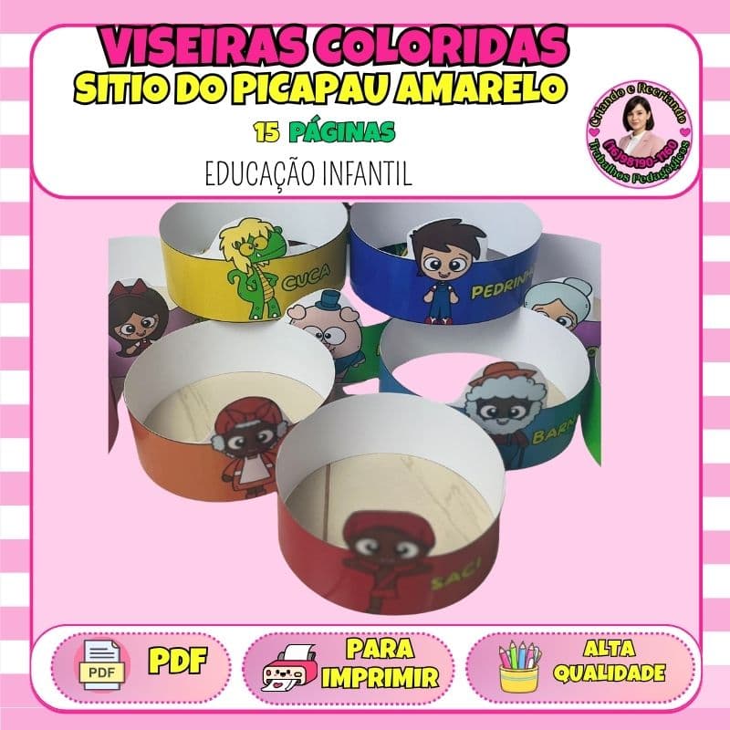 Dê vida aos personagens de Monteiro Lobato com as Viseiras do Sítio! Um kit com 10 personagens em versões colorida e para colorir. Perfeito para o Dia do Livro e para estimular o faz de conta com autoridade pedagógica!