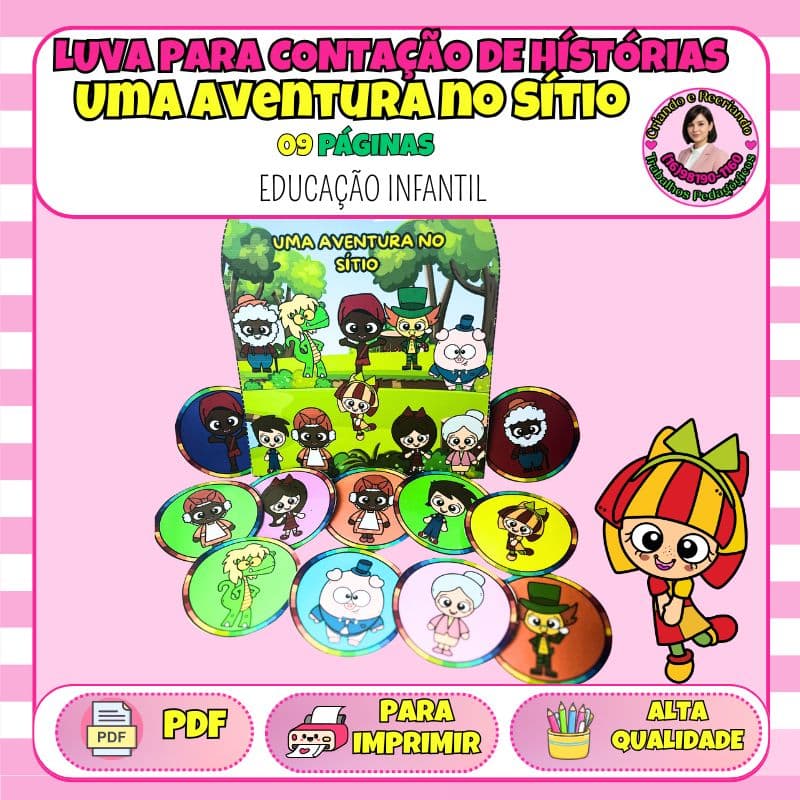 Encante sua turma com a Luva "Uma Aventura no Sítio"! Um recurso visual completo e colorido para contar as histórias de Monteiro Lobato de forma interativa e inesquecível. Praticidade e ludicidade em um só material!