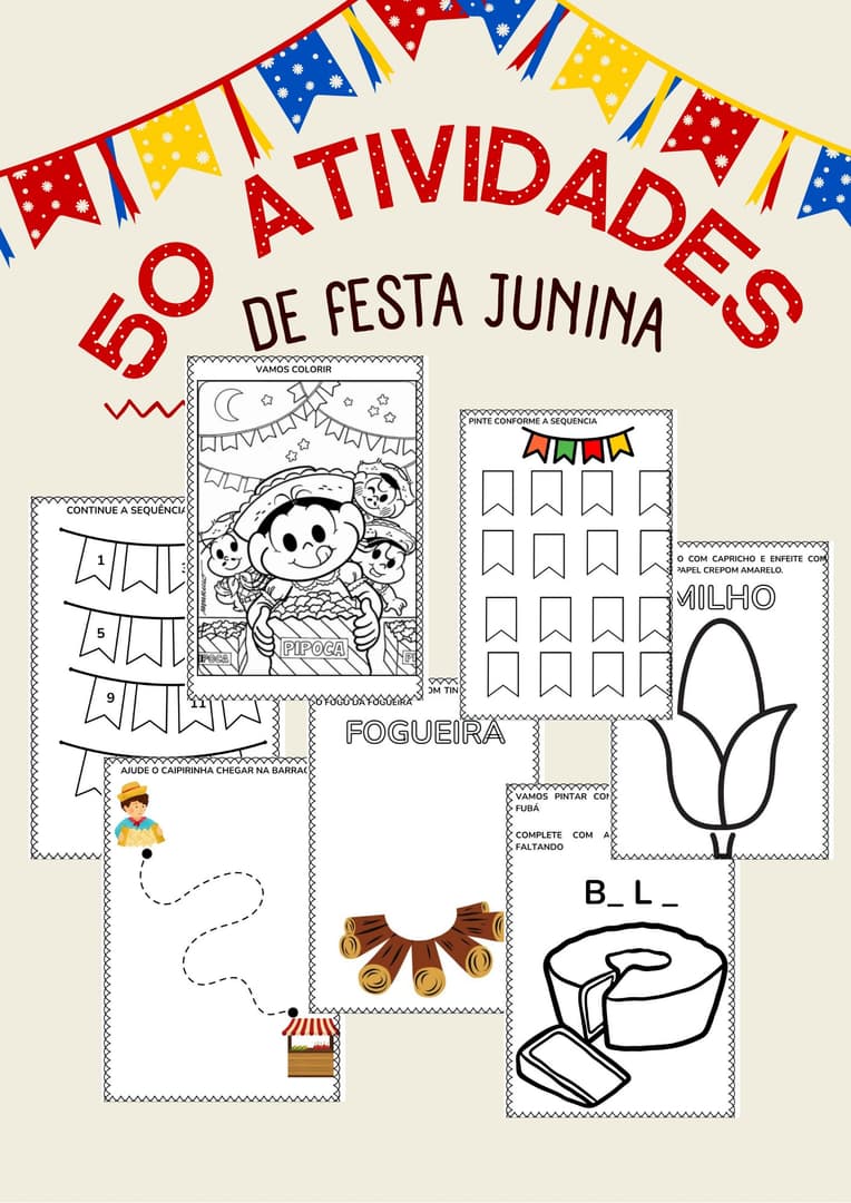 50 ATIVIDADES DE FESTA JUNINA PRONTAS PARA IMPRIMIR PARA EDUCAÇÃO INFANTIL. ATIVIDADES DE SEQUÊNCIA LÓGICO-MATEMÁTICA E LINGUAGEM E DESENHOS PARA COLORIR 50 PÁGINAS EM PDF PRONTAS PARA IMPRIMIR