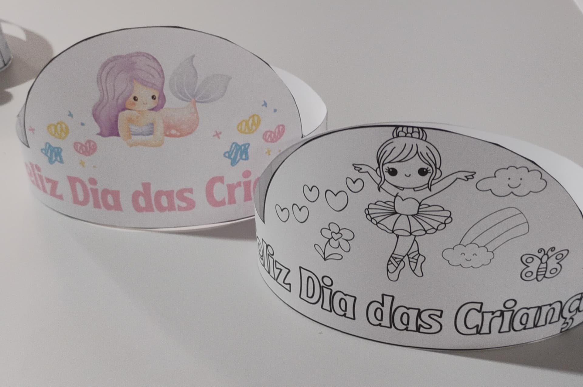 Arquivo digital Dia das Crianças Coroa e lembrancinha dia das crianças Coroa dia das crianças colorida e para colorir menino e menina Pode ser impresso em papel de sulfite