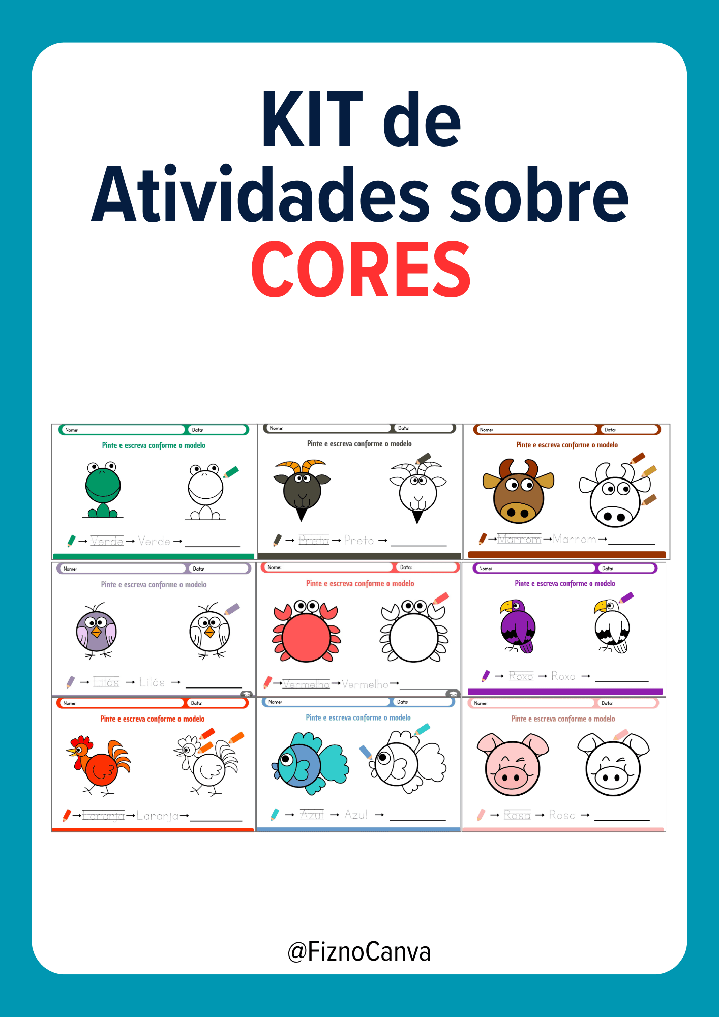 Atividade de desenho com modelo na cor desejada com a escrita da cor.