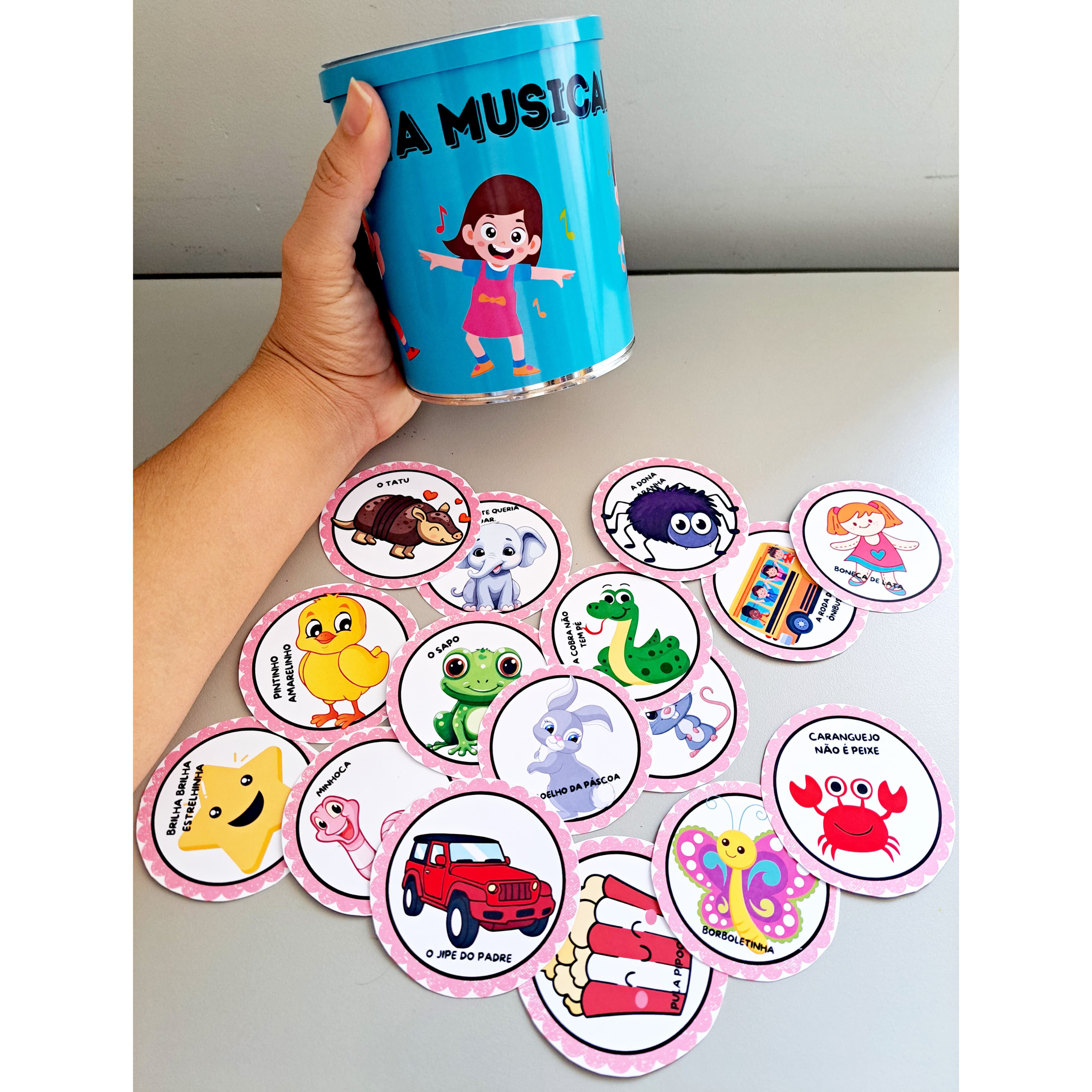 Um terceiro cartão colorido é um brinde para simbolizar a alegria e o carinho que estas profissionais dedicam diariamente à comunidade escolar.