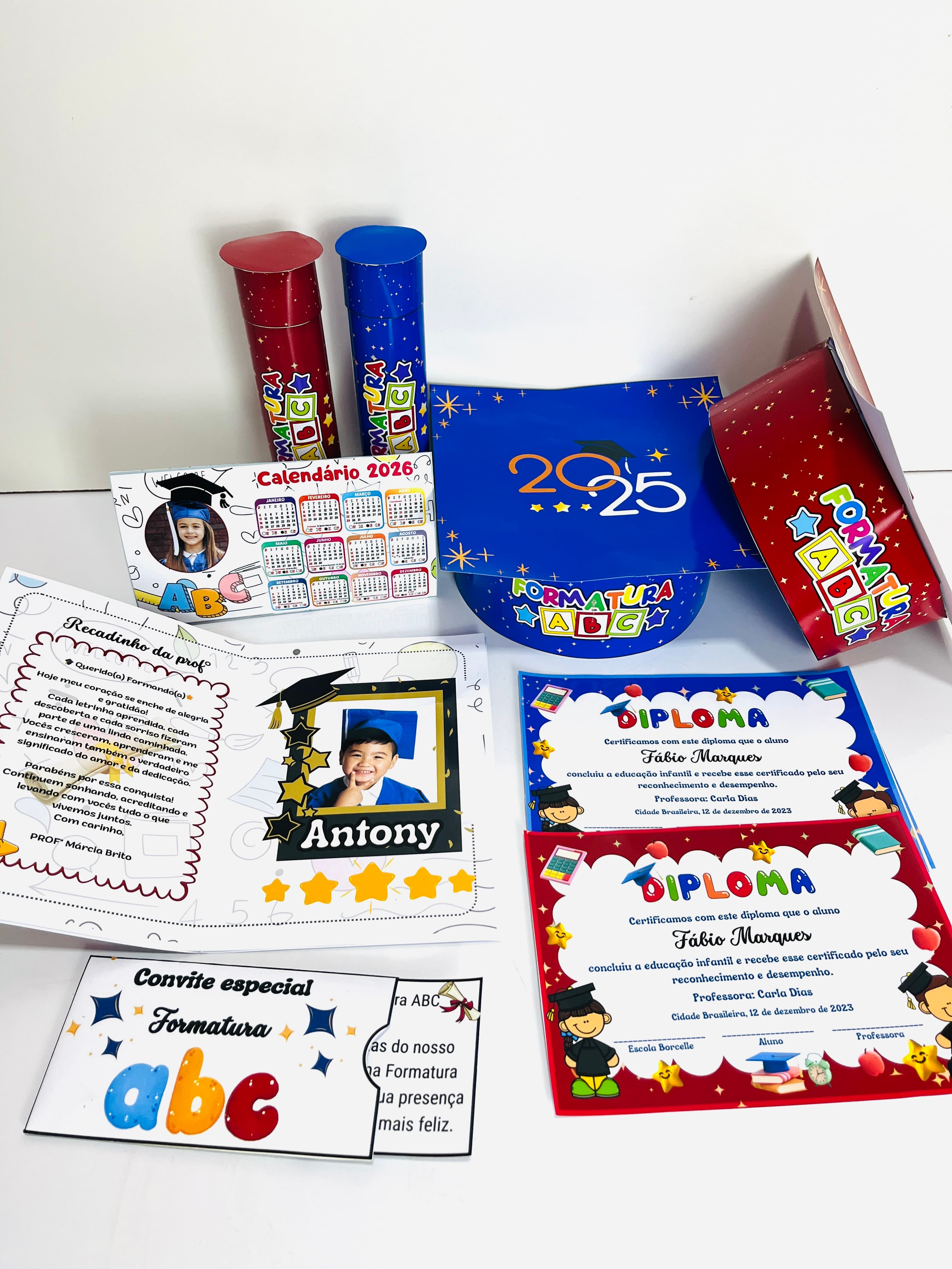 Esse kit de formatura ABC foi feito para facilitar sua vida e encantar as famílias. Muita praticidade, beleza e um toque especial para deixar esse momento ainda mais marcante para sua turma. Você recebe: