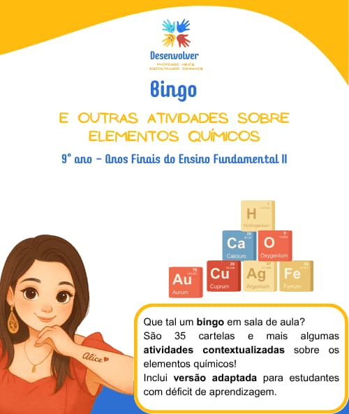 Que tal um bingo divertido e educativo sobre os elementos químicos? Esta metodologia permite um aprendizado lúdico e contextualizado com o cotidiano do estudante. Inclui atividades adaptadas para estudantes com déficit de aprendizagem.