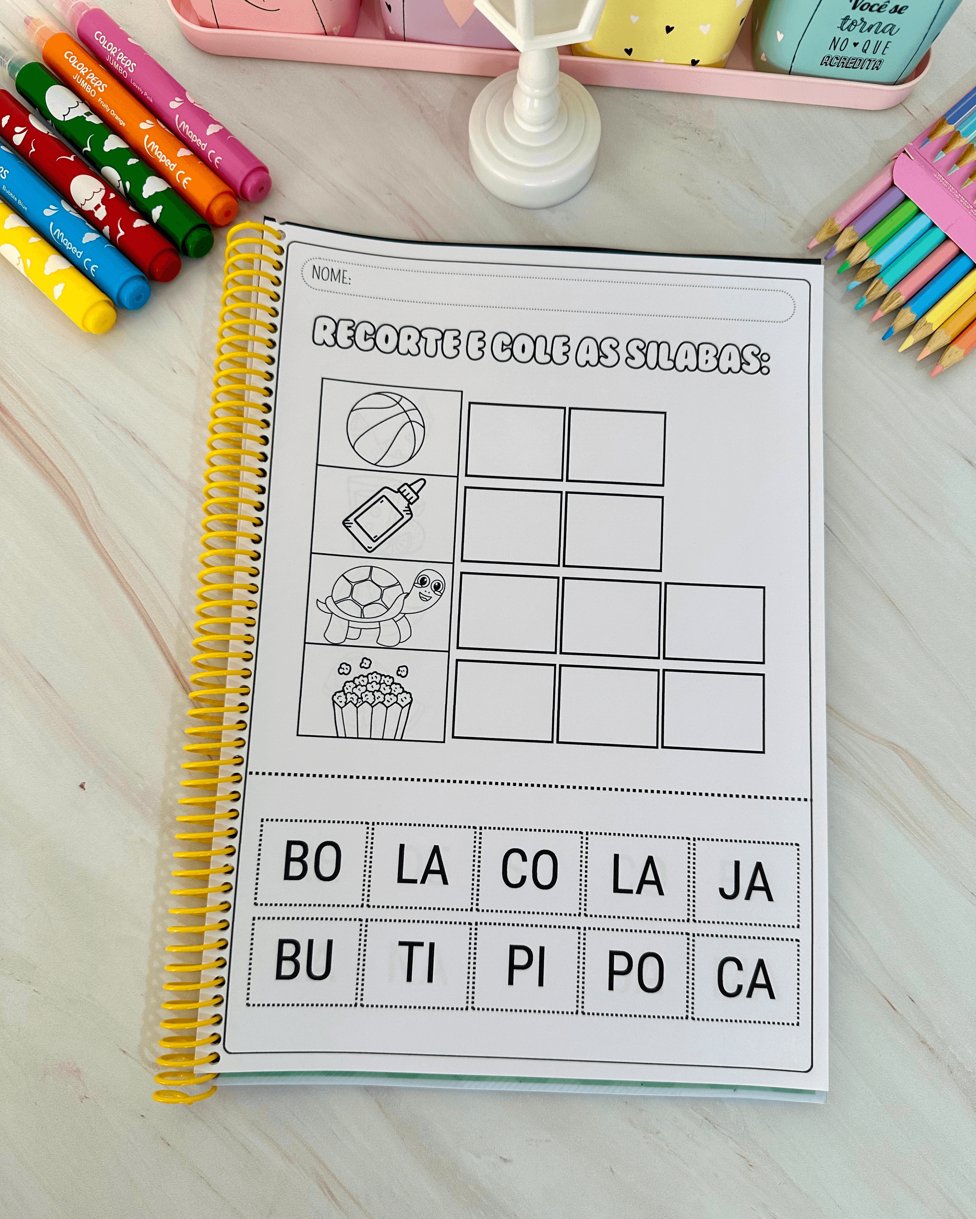 com diferentes imagens e com silabas móveis para a criança organizar