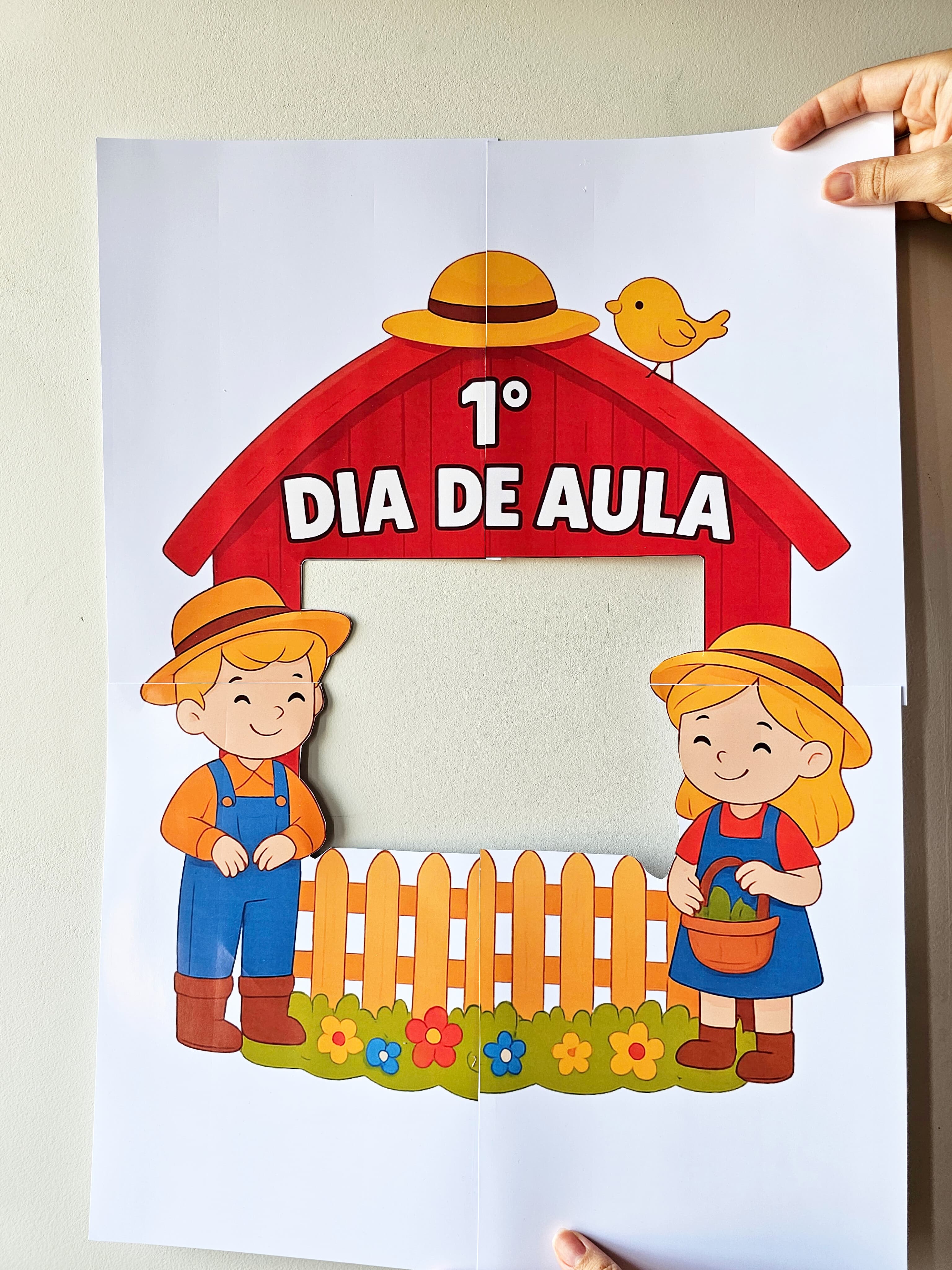 Moldura para fotos 1° dia de aula com o tema Fazendinha.