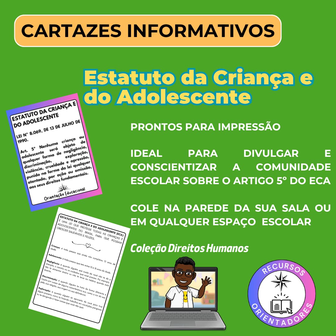 Cartazes informativos sobre o Artigo 5º do Estatuto da Criança e do Adolescente (ECA).