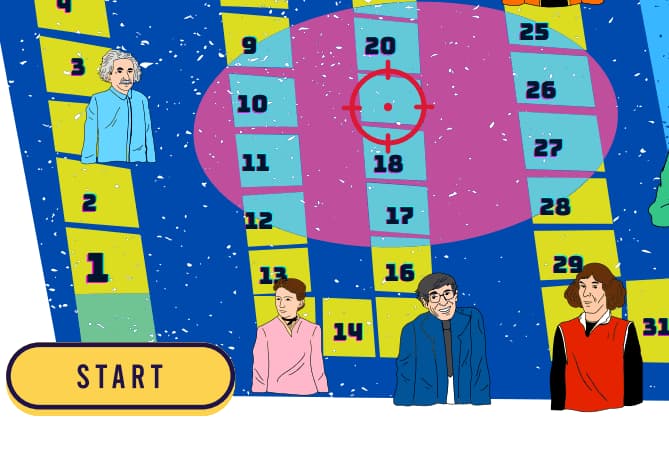 Jogo de trilha sobre cientistas da Astronomia e Física para imprimir e usar em sala de aula de forma lúdica.