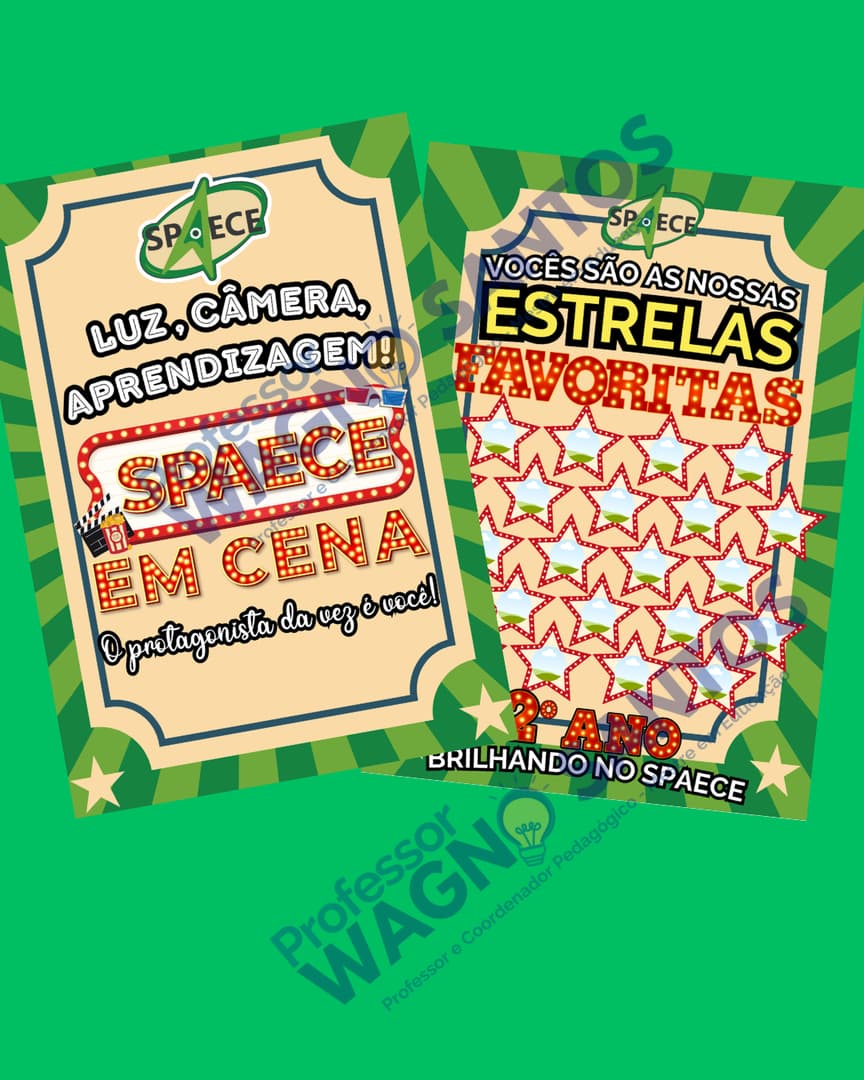 Decole para o Sucesso no SAEB com o Kit de Mimos "Hora de Decolar!" Prepare seus alunos para o SAEB 2025 com o nosso exclusivo e motivador Kit de Mimos "Hora de Decolar!" Este kit foi cuidadosamente pensado para transformar a rotina de estudos em uma jornada espacial emocionante, oferecendo recursos lúdicos e práticos que incentivam o foco, a confiança e a celebração de cada passo rumo ao sucesso! Com o tema "astronautas no espaço", cada item foi desenvolvido para criar um ambiente de aprendizado inspirador e divertido, tornando a preparação para o SAEB uma aventura inesquecível. O que você encontrará no Kit de Mimos "Hora de Decolar!" (Arquivos em PDF): Adesivos para Rótulo de Garrafa d'Água: Mantenha a hidratação em alta com rótulos temáticos que transformam garrafas comuns em combustível para a jornada espacial do conhecimento! (Para garrafas pequenas) Marca Página com Recorte para Caneta/Lápis: Ajude seus alunos a organizar seus estudos com marcadores de página que também servem como suporte para canetas ou lápis, garantindo que estejam sempre prontos para anotar novas descobertas. Adesivo para Personalizar Lápis: Dê um toque especial aos materiais de escrita com adesivos vibrantes que elevam o espírito de cada lápis. Adesivo para Personalizar Caneta: Personalize canetas para que cada anotação seja feita com a energia de um futuro astronauta. Cartão para Barra de Cereal: Incentive pausas estratégicas e energéticas com cartões personalizados para barras de cereal, lembrando os alunos que "Uma dose extra de energia é essencial para a sua jornada!". Cartão para Bombom: Pequenas recompensas fazem a diferença! Cartões temáticos para bombons que adoçam o caminho do aprendizado. Molde para Servir Pipoca (Caixa): Transforme os momentos de relaxamento ou estudo em uma experiência cinematográfica com caixinhas de pipoca personalizadas, ideais para "Uma pitada de sabor para o seu grande dia de vitória no SAEB!". Painel Ampliado de Contagem Regressiva (40 ou 24 folhas): Crie um mural impactante na sua escola com nosso painel de contagem regressiva. (Basta cobrir a parte do número com papel contact ou fita transparente para poder registrar e apagar a contagem diária com pincel atômico, sem danificar o painel.) Plaquinhas Temáticas para Fotos: Capture a alegria e a confiança dos alunos com plaquinhas divertidas para fotos, perfeitas para registrar o engajamento e a união da turma ("Prontos para o SAEB", "Eu represento a MINHA ESCOLA", "Juntos somos mais FORTES!", "CHECK-IN no SAEB 2025"). A Ideia principal, é entregar esses mimos no dia da avaliação, para os alunos. Mas você pode adequar.