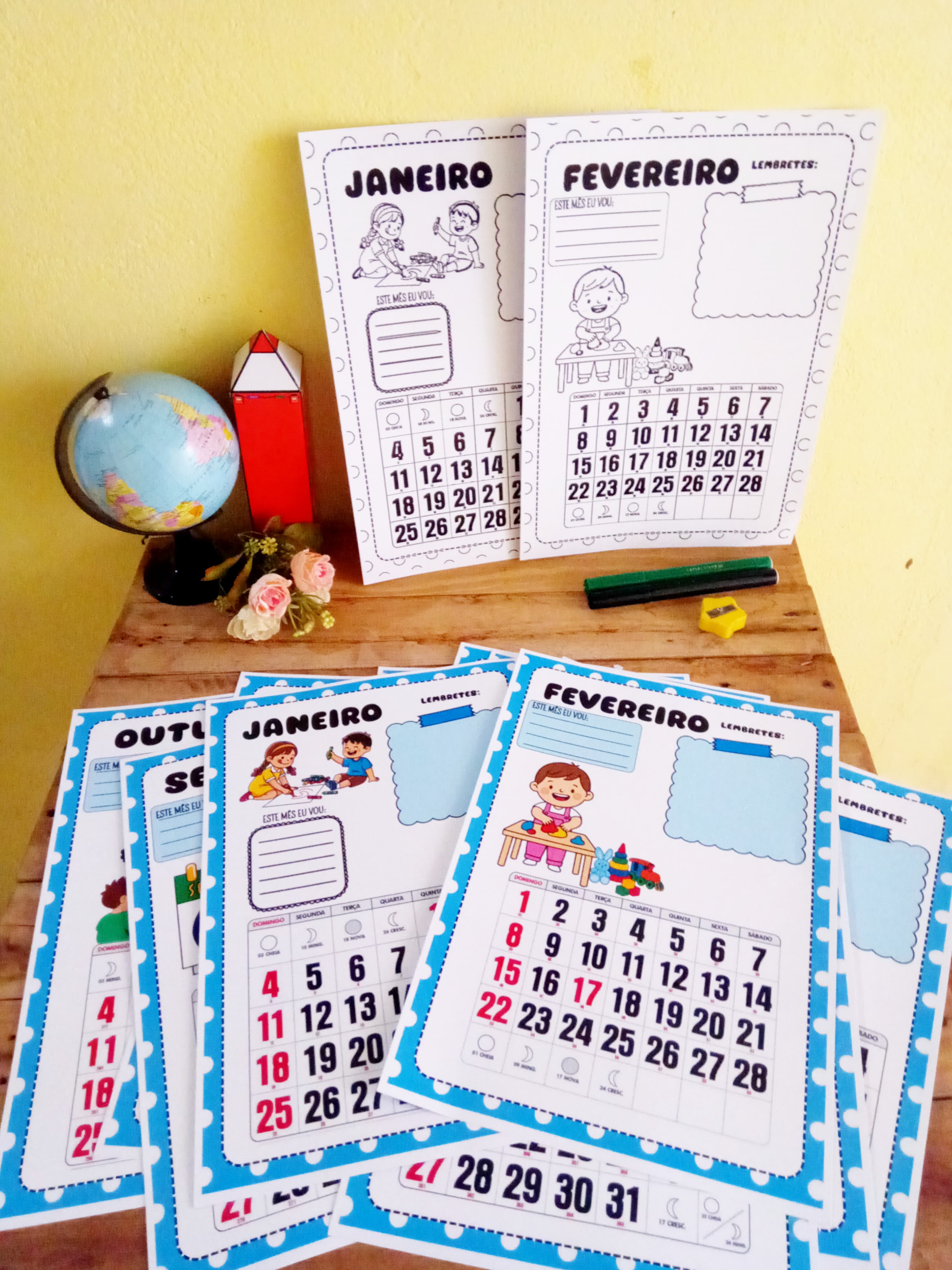 KIT CALENDÁRIOS - Versão colorida e para colorir 🗓️