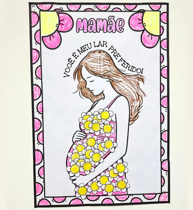 Cartaz colaborativo para colorir para trabalhar o tema “Dia das Mães” com crianças da Educação Infantil.