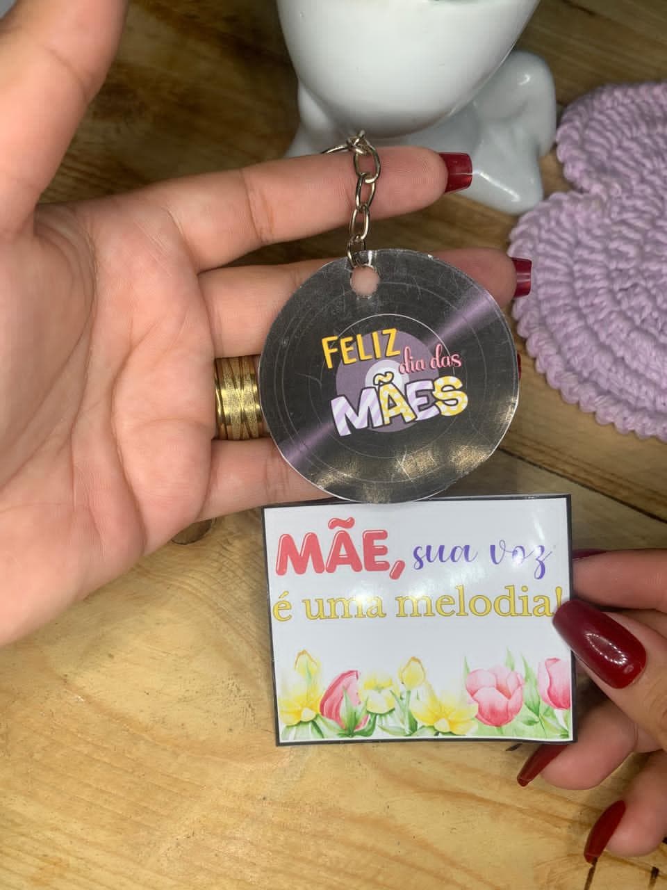 Encante as mamães com esse mimo delicado e cheio de amor! 💝 ✨ Contém: ✔ Chaveirinho personalizado “Feliz Dia das Mães” ✔ Cartão com frase emocionante ✔ Design fofo e colorido