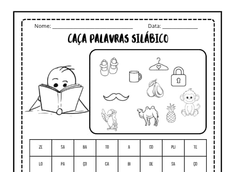 Revisando as sílabas com u caça-palavras diferente, onde o aluno encontra o desenho e pinta suas sílabas, montando a palavra.