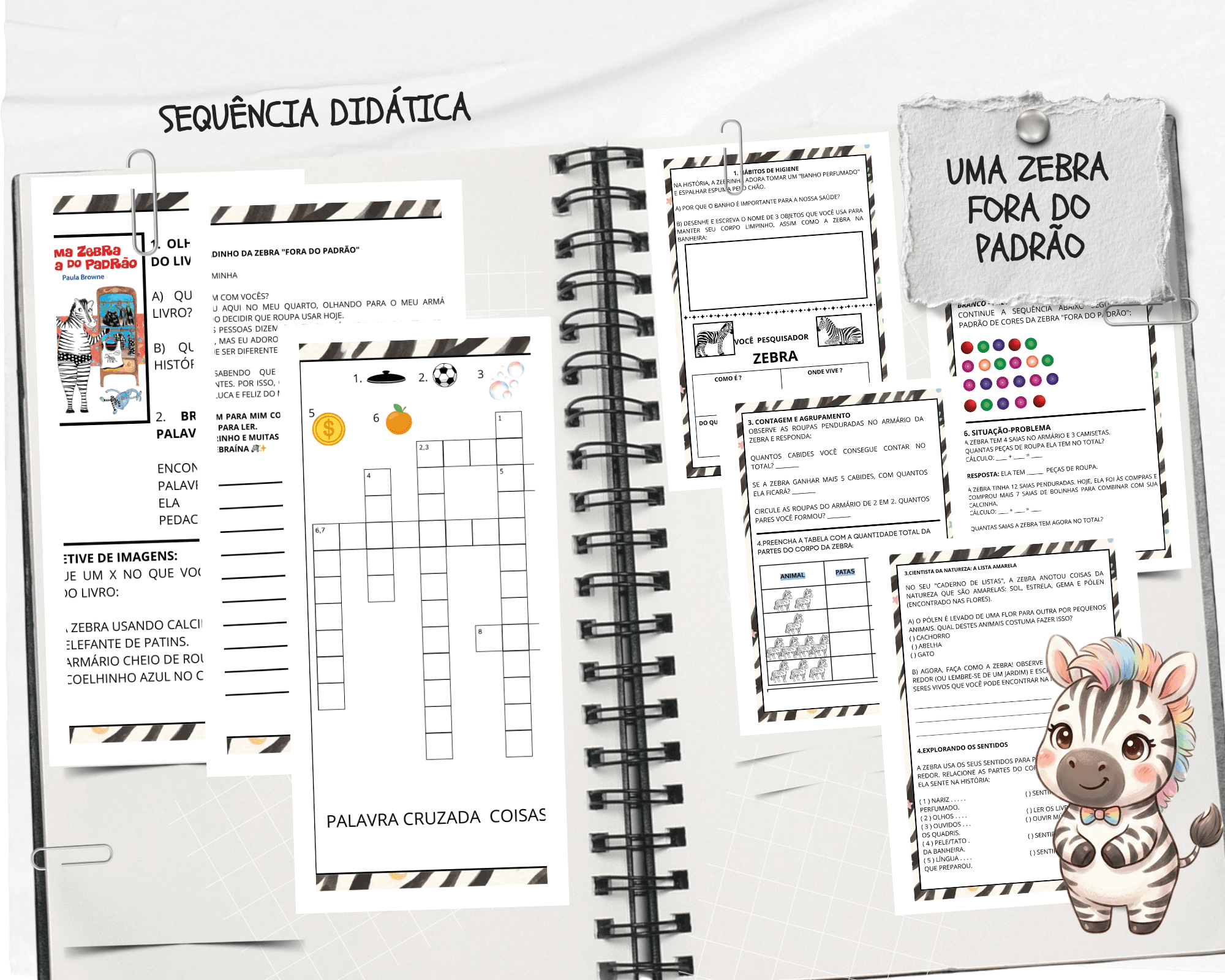 Encante seus alunos com a história da Zebraína! Uma sequência didática completa e lúdica que une alfabetização, matemática e ciências, trabalhando a aceitação das diferenças de forma criativa e prática para a sala de aula.