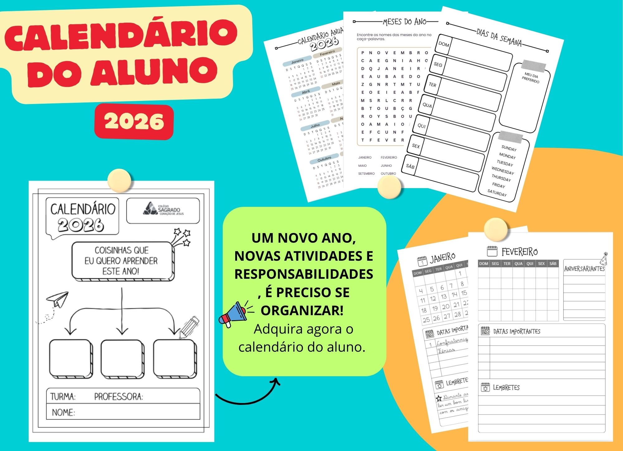 Por meio de propostas práticas, o material orienta a construção coletiva de elementos essenciais do cotidiano escolar, como mural de boas-vindas, crachá de mesa, lista de alunos, calendário mensal, gráficos, equipes de ajudantes, rotina e organização de materiais individuais e coletivos.